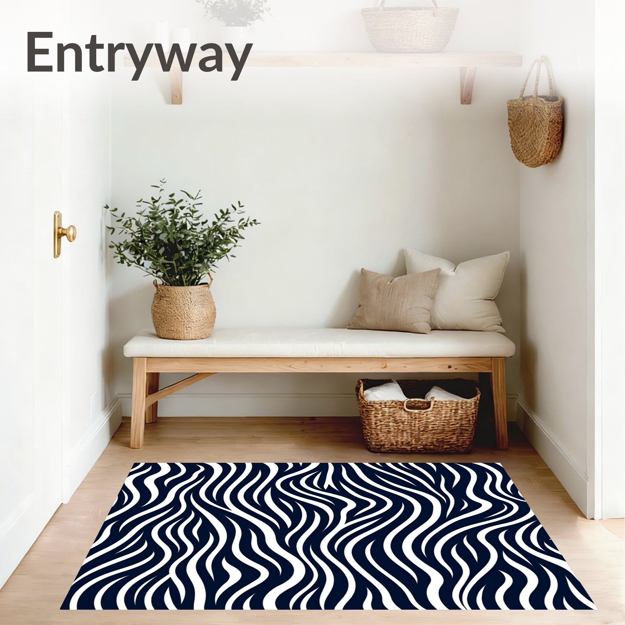 Flatwoven High Traffic Area Rug, Beachy Wave Motif Floor with Technology, Non Slip, Stain Resistant, Washable Area Rugs for Living Room, Bedroom (Black) Overview: