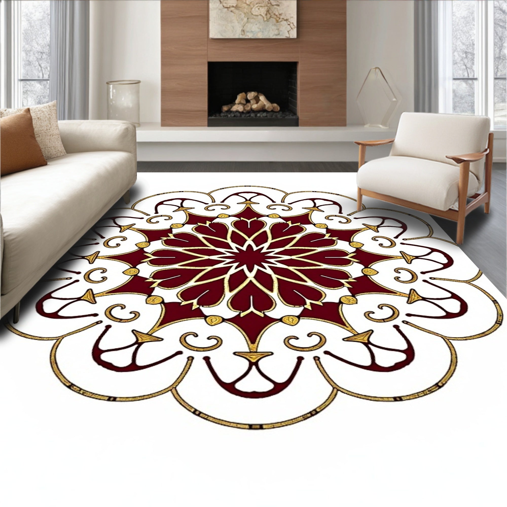 Flatwoven High Traffic Area Rug, Bloom with Ornamental Petal Layers and Baroque Curves, Non Slip, Stain Resistant, Washable Area Rugs for Living Room, Bedroom (Gold) Overview: