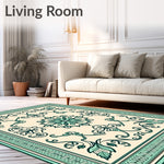 Flatwoven High Traffic Area Rug, Boho Eclectic Scrollwork Artistry, Non Slip, Stain Resistant, Washable Area Rugs for Living Room, Bedroom (Beige) Overview: