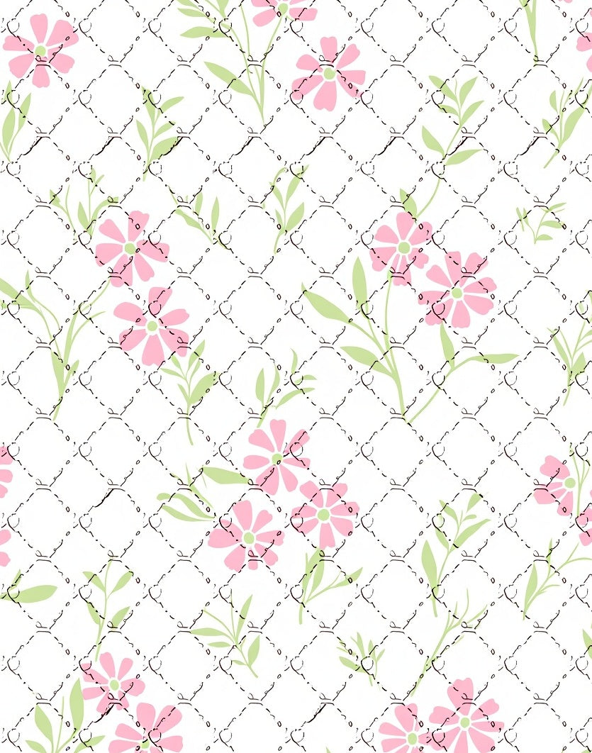 Boho Lattice with Scattered Blossom Accents (White)