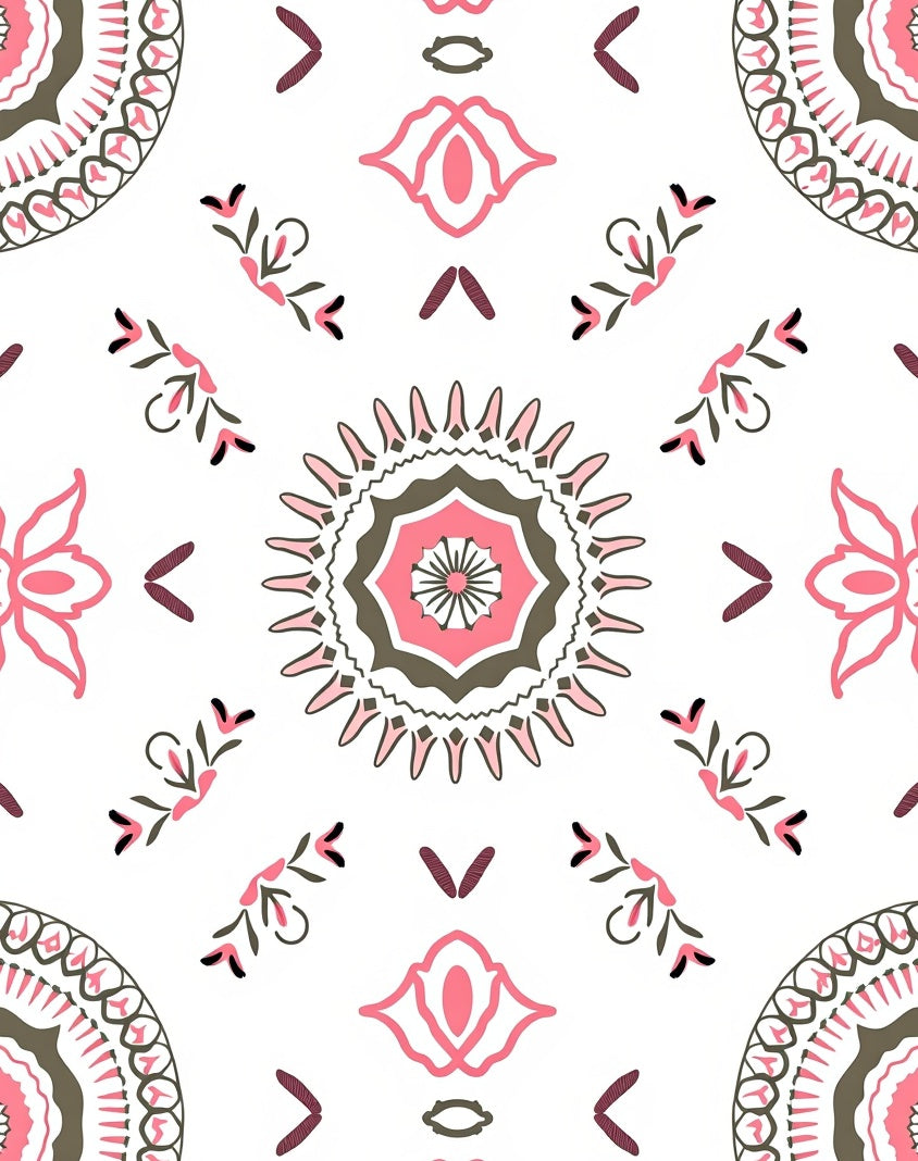 Boho Luxe Medallion Interlocking Floral Modern Artistic Style (Pink)