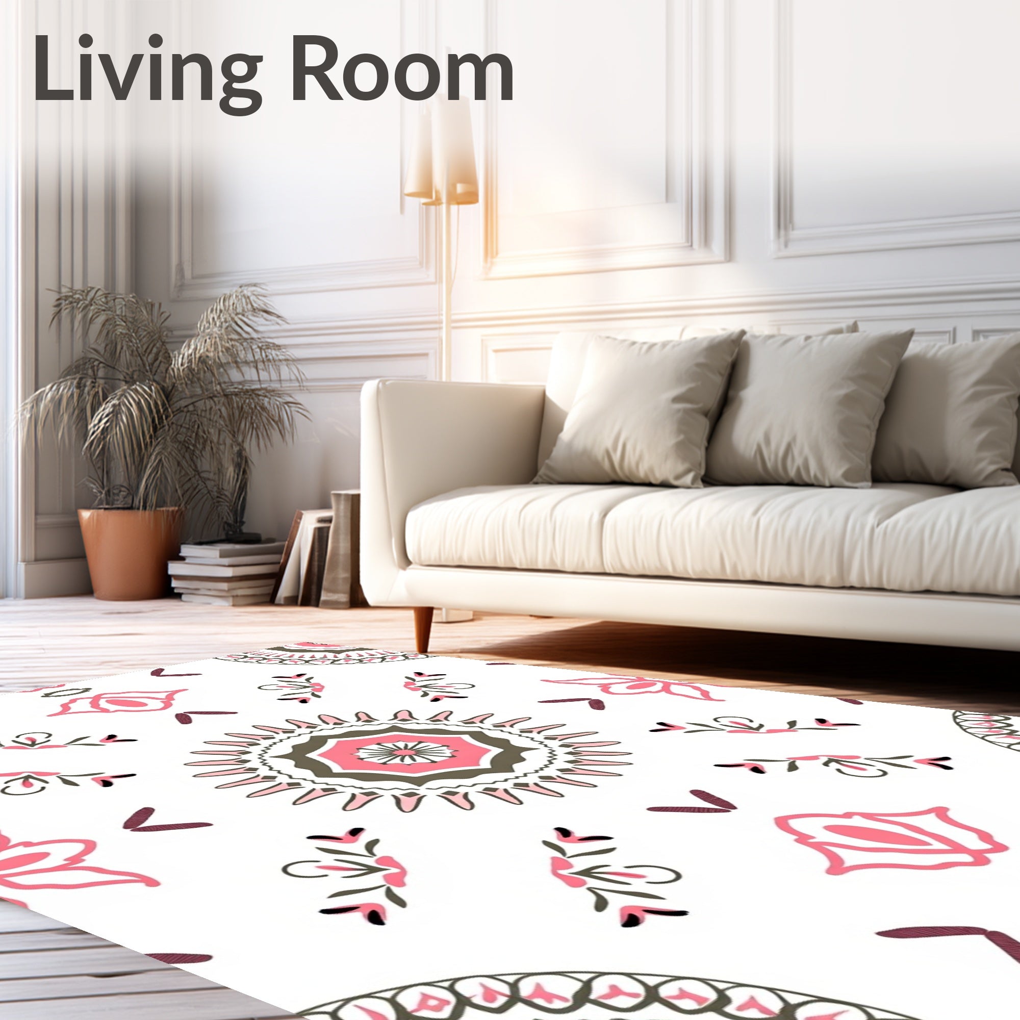 Flatwoven High Traffic Area Rug, Boho Luxe Medallion Interlocking Floral Modern Artistic Style, Non Slip, Stain Resistant, Washable Area Rugs for Living Room, Bedroom (Pink) Overview: