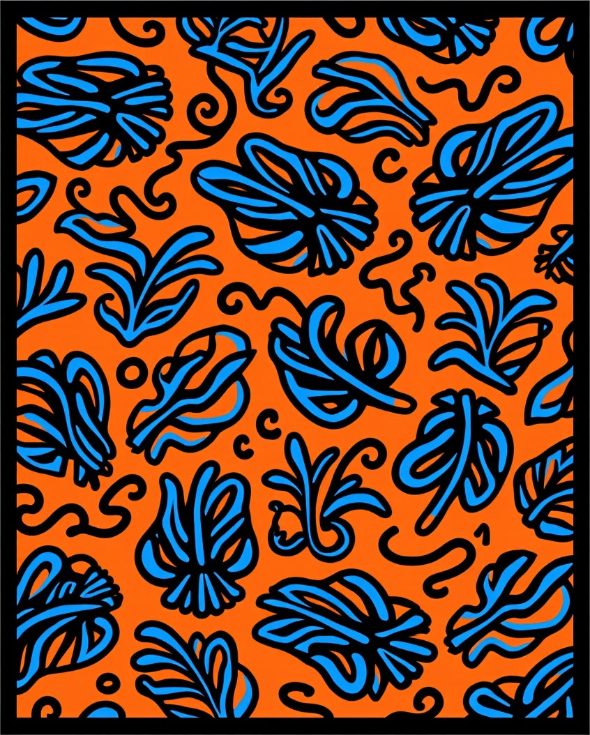 Boho Scrollwork with Floating Botanical (Orange)