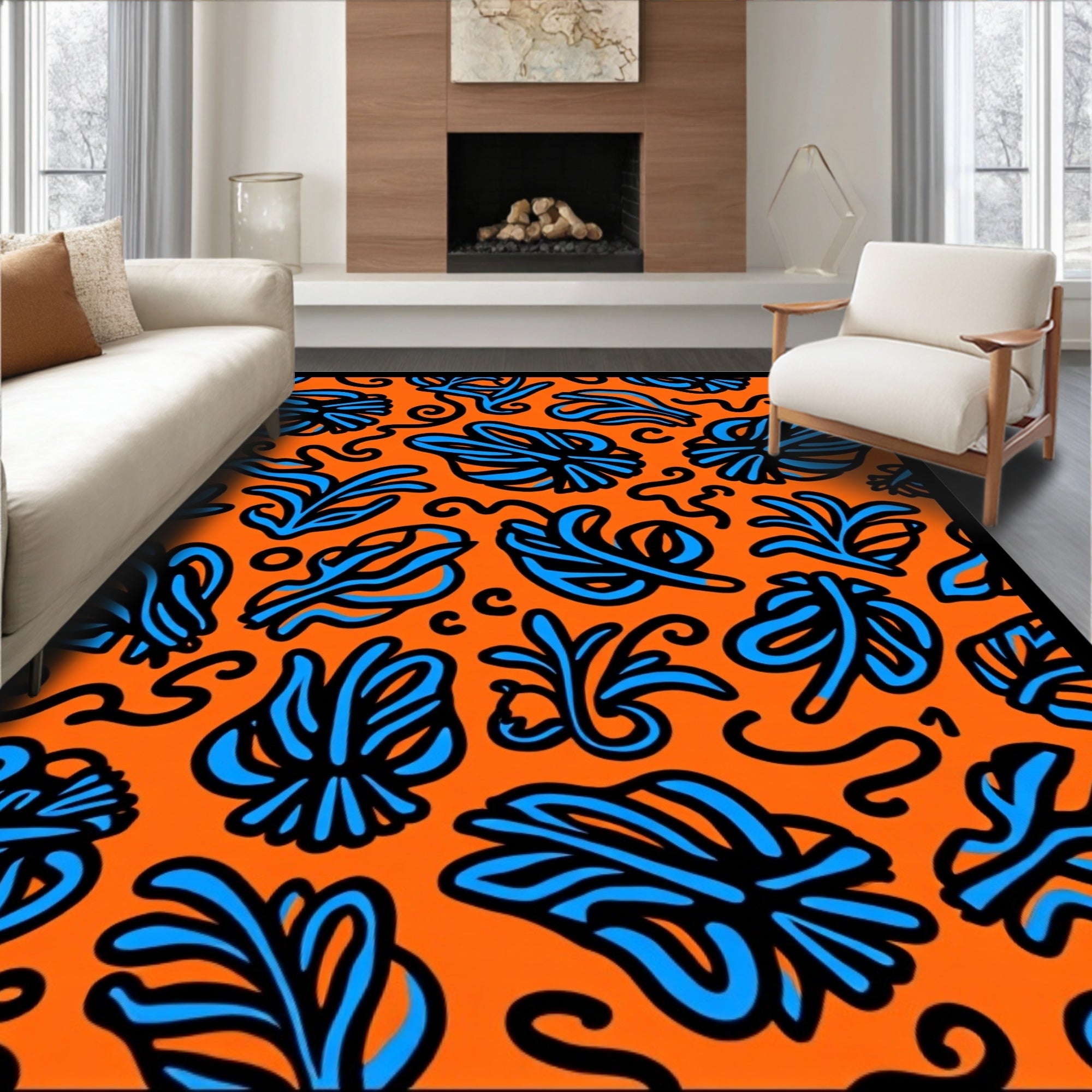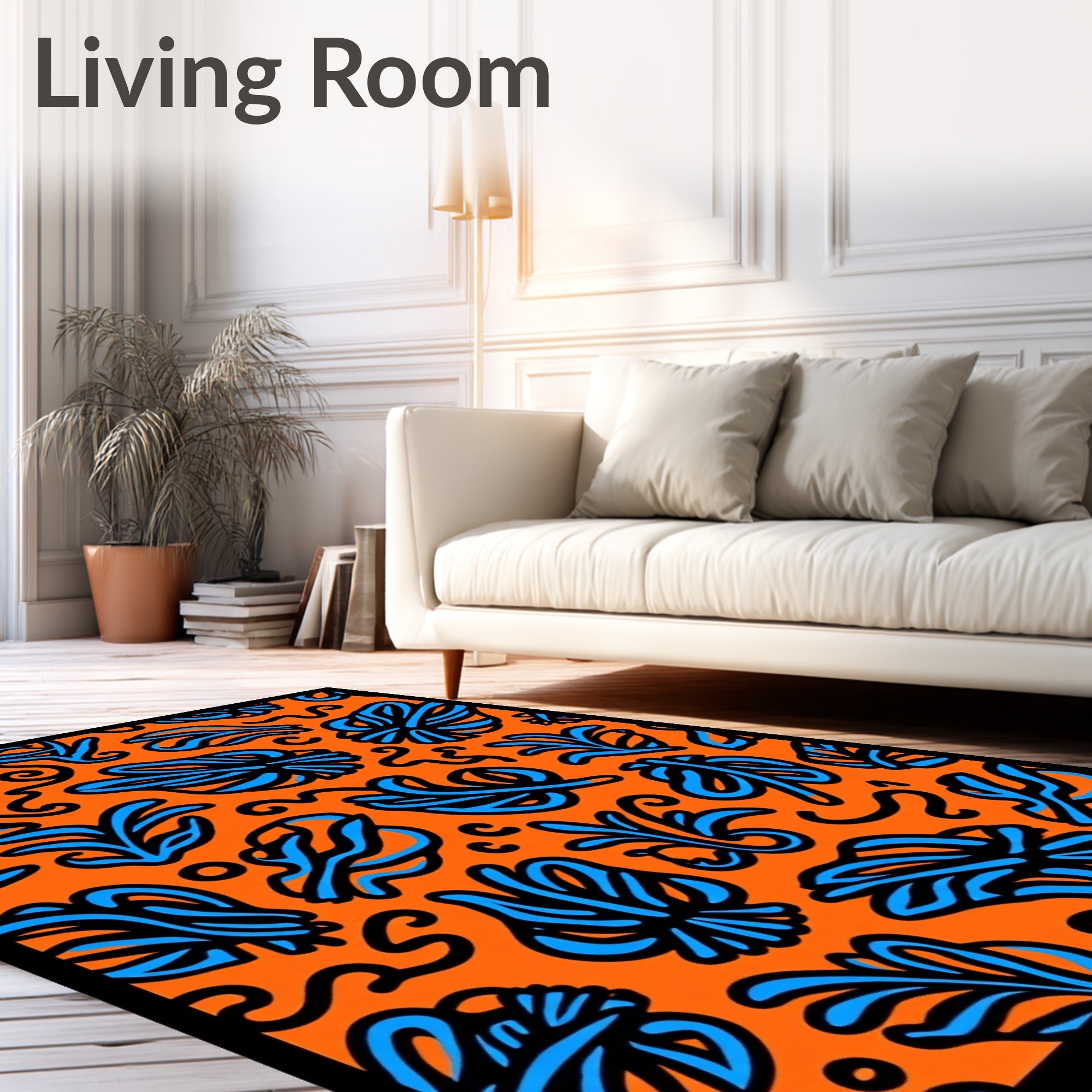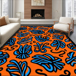 Flatwoven High Traffic Area Rug, Boho Scrollwork with Floating Botanical, Non Slip, Stain Resistant, Washable Area Rugs for Living Room, Bedroom (Orange) Overview: