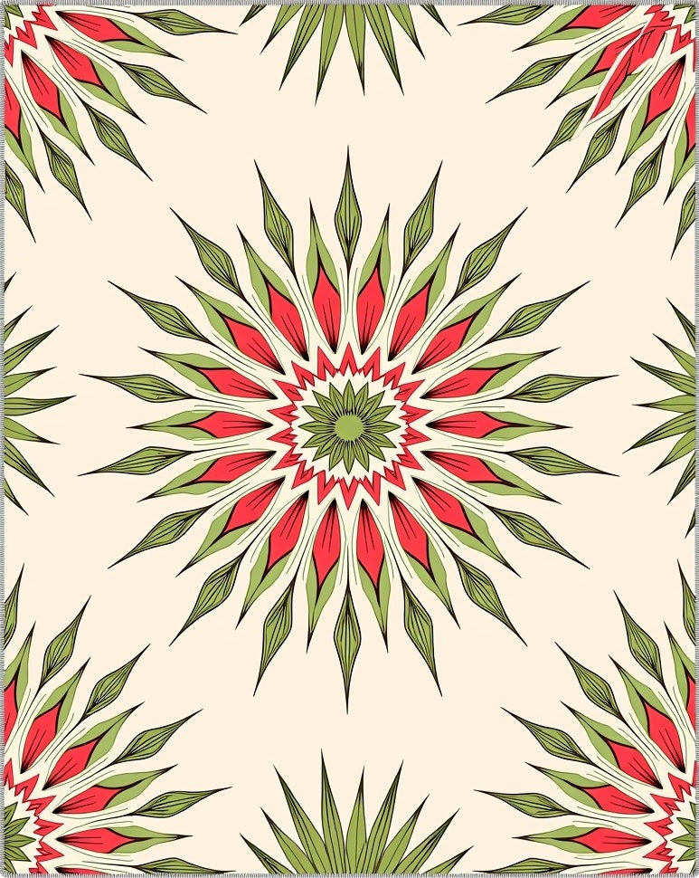 Boho Sunburst Motif with Flowing Petal Array (Ivory)