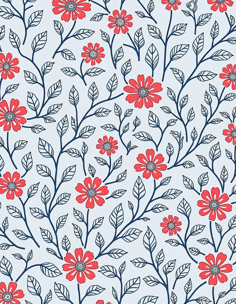 Boho Wildflower Tapestry with Whimsical Vine Detailing (Red)
