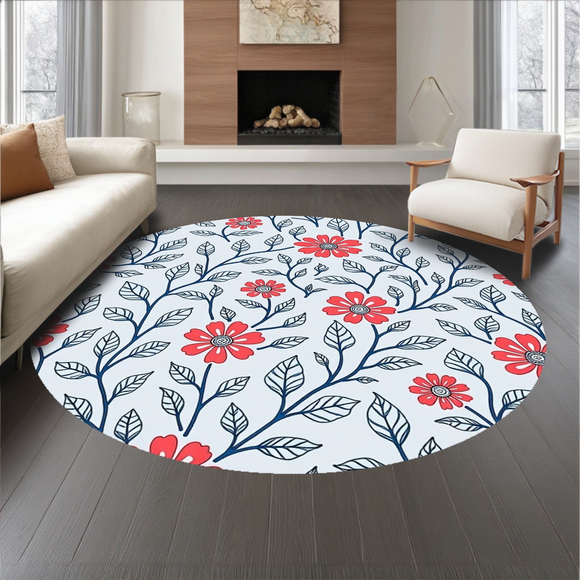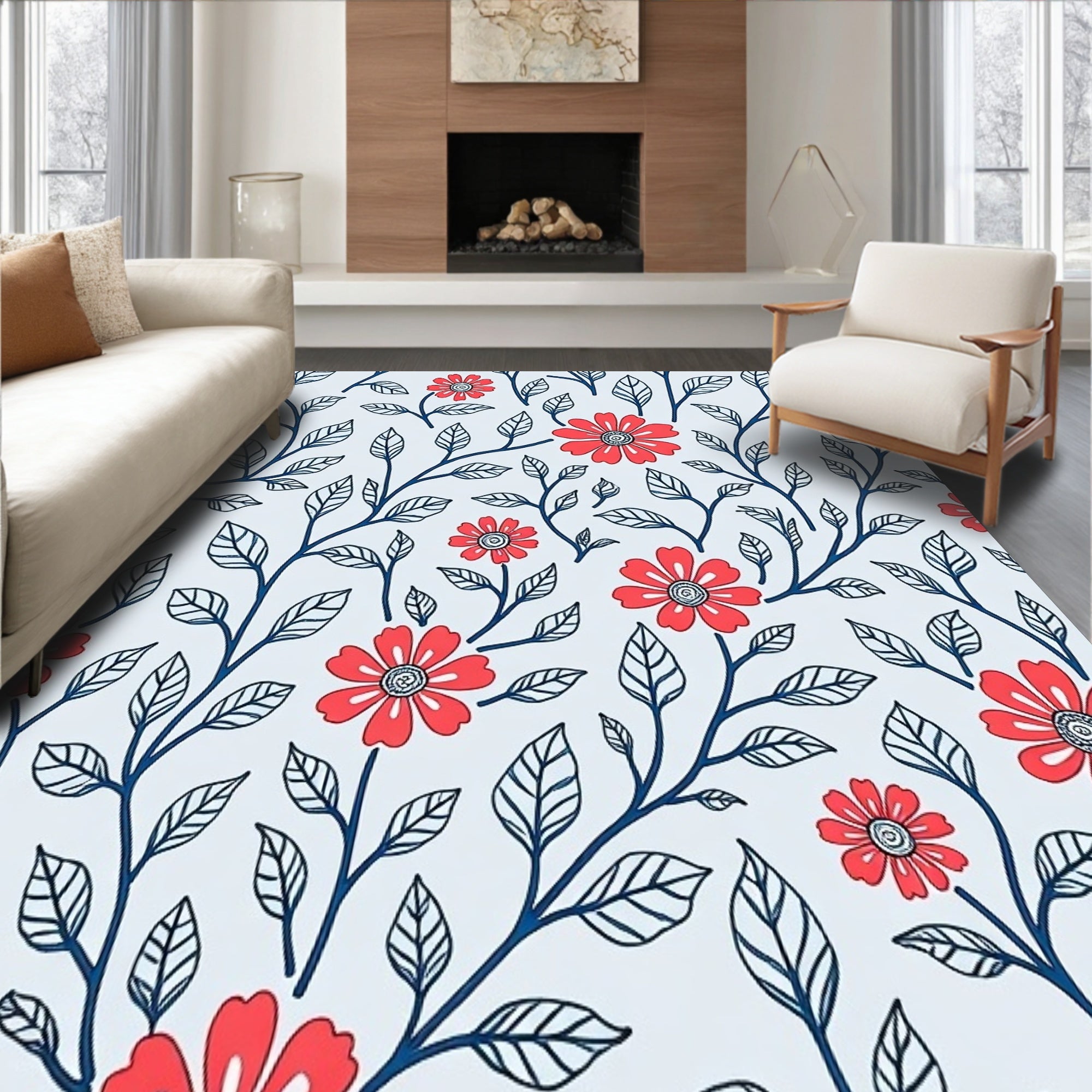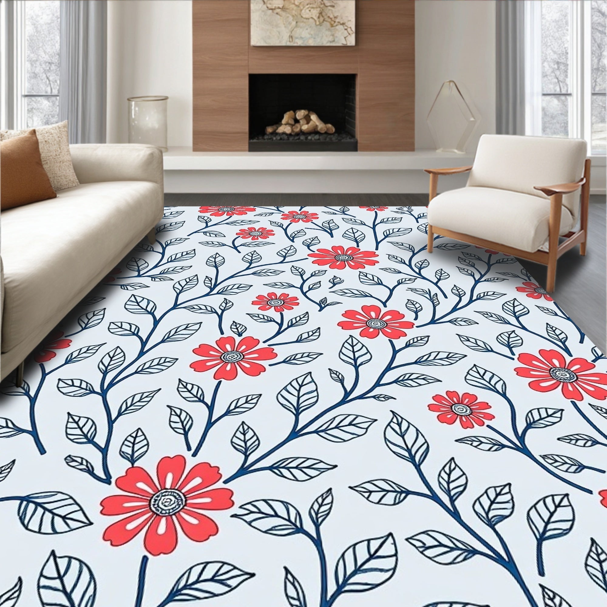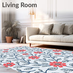 Flatwoven High Traffic Area Rug, Boho Wildflower Tapestry with Whimsical Vine Detailing, Non Slip, Stain Resistant, Washable Area Rugs for Living Room, Bedroom (Red) Overview: