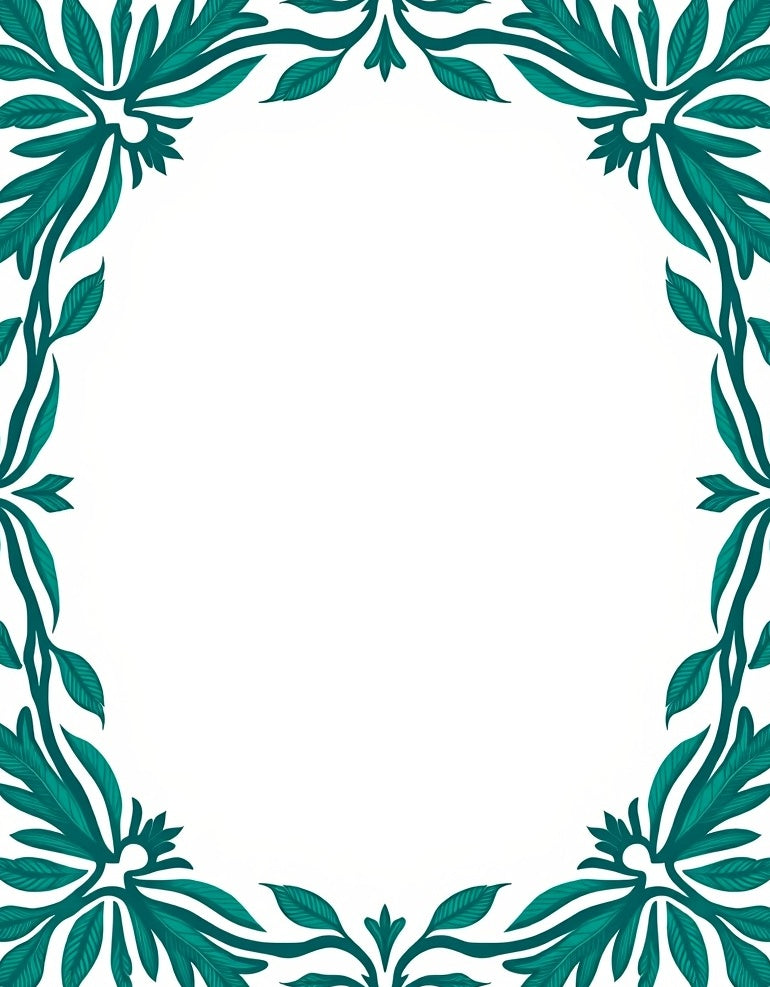 Botanical Border Design with Stylized Foliage and Vine (Blue)