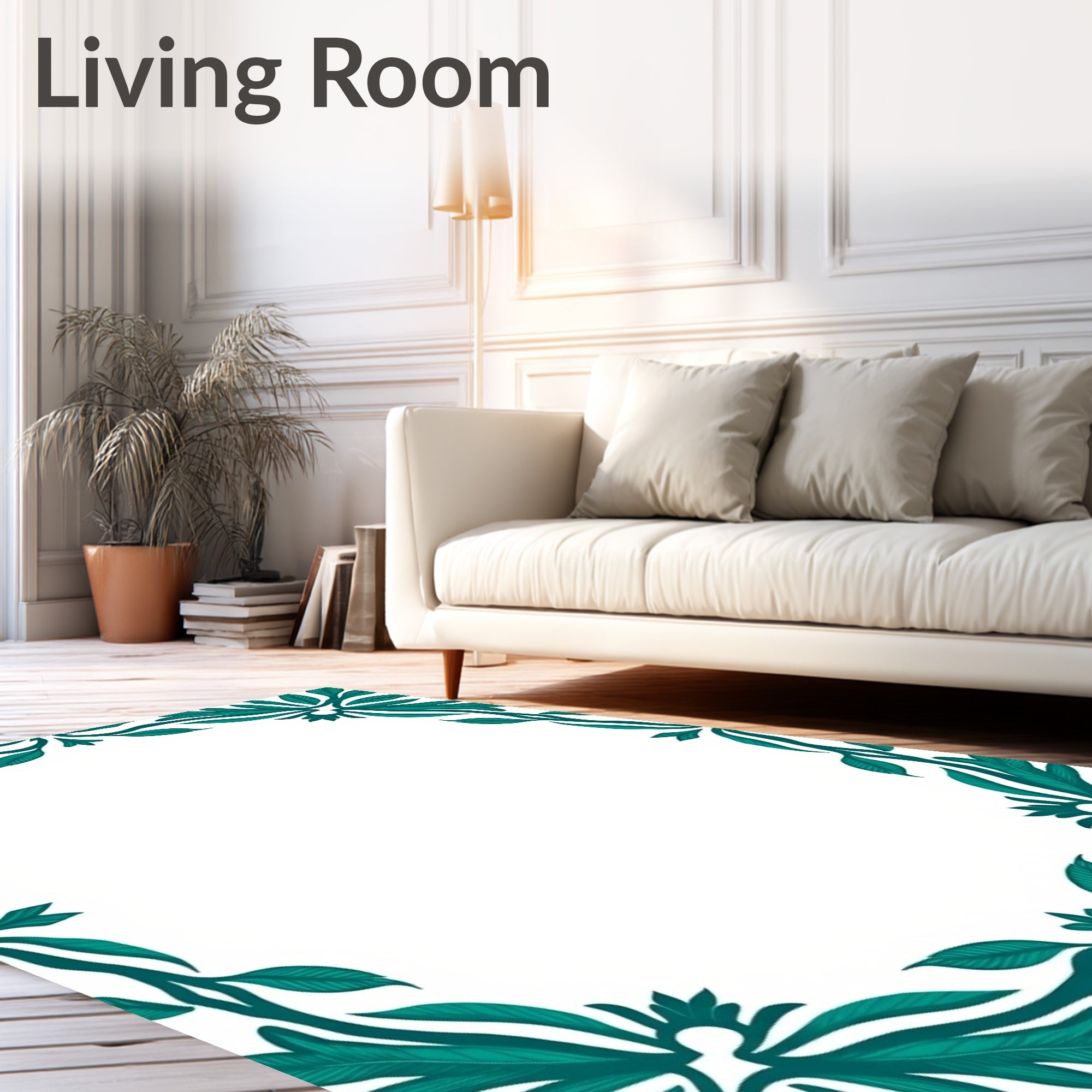 Flatwoven High Traffic Area Rug, Botanical Border Design with Stylized Foliage and Vine, Non Slip, Stain Resistant, Washable Area Rugs for Living Room, Bedroom (Blue) Overview: