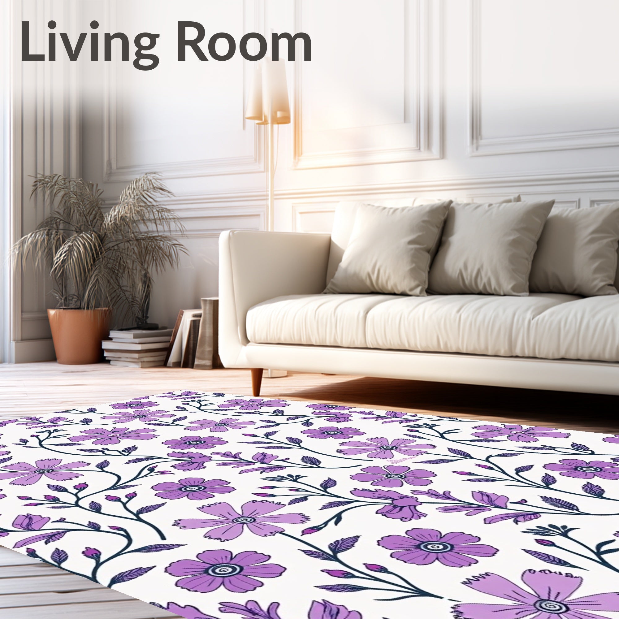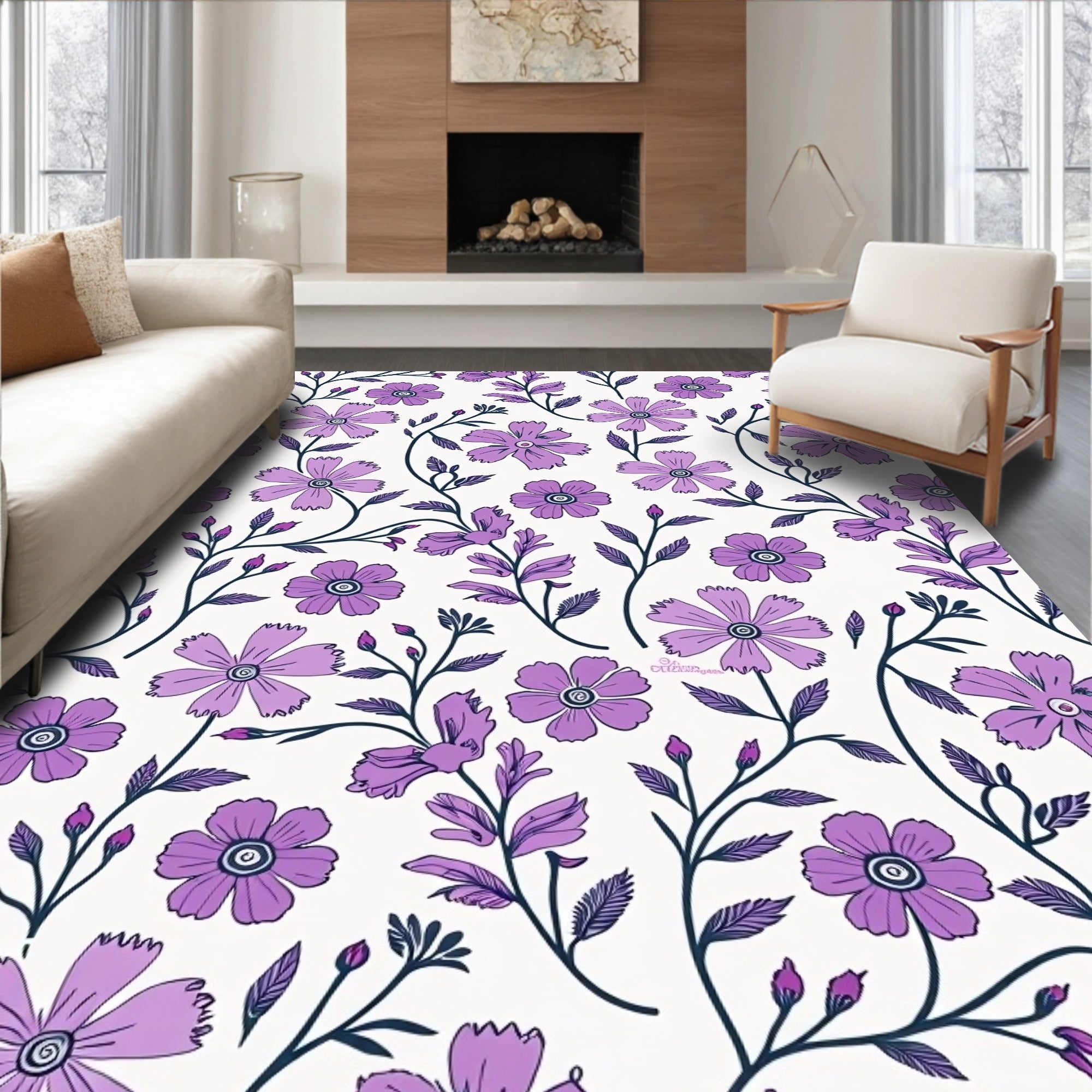Flatwoven High Traffic Area Rug, Botanical Garden with Delicate Wildflower Vine, Non Slip, Stain Resistant, Washable Area Rugs for Living Room, Bedroom (Purple) Overview: