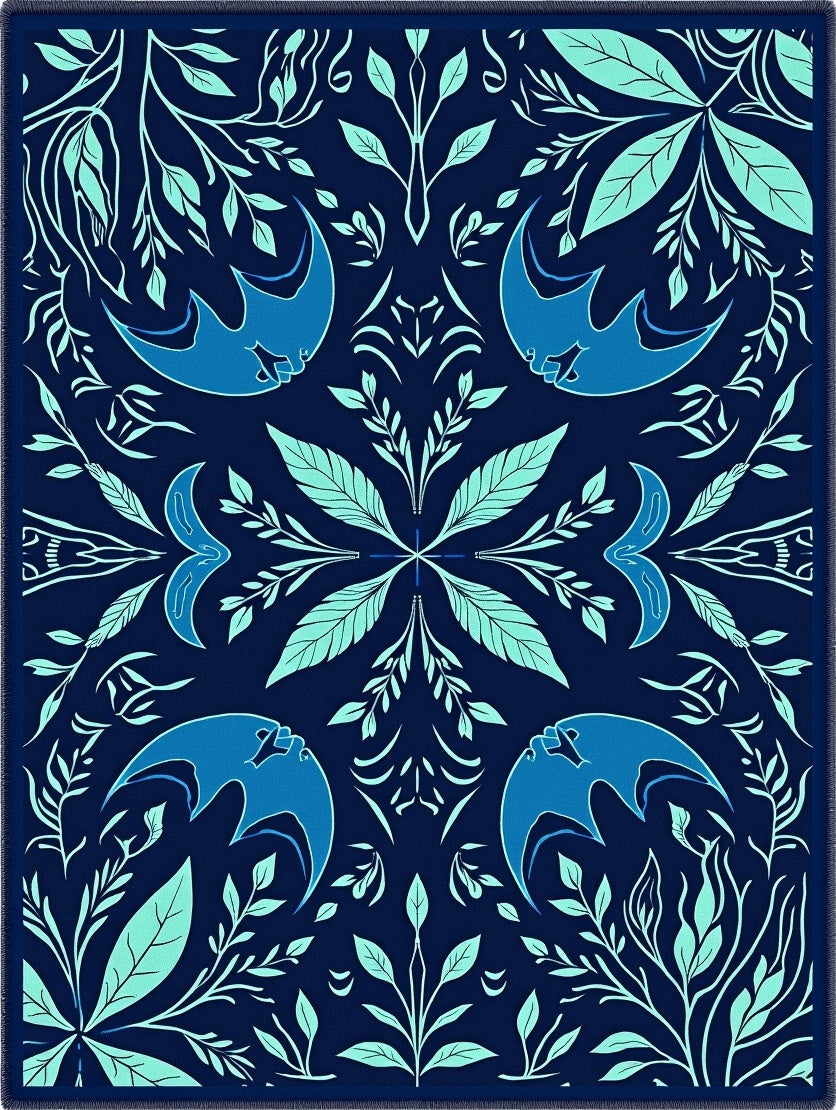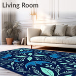 Flatwoven High Traffic Area Rug, Botanical Insect Watercolor Artistry Enchanted Garden Symphony, Non Slip, Stain Resistant, Washable Area Rugs for Living Room, Bedroom (Blue) Overview: