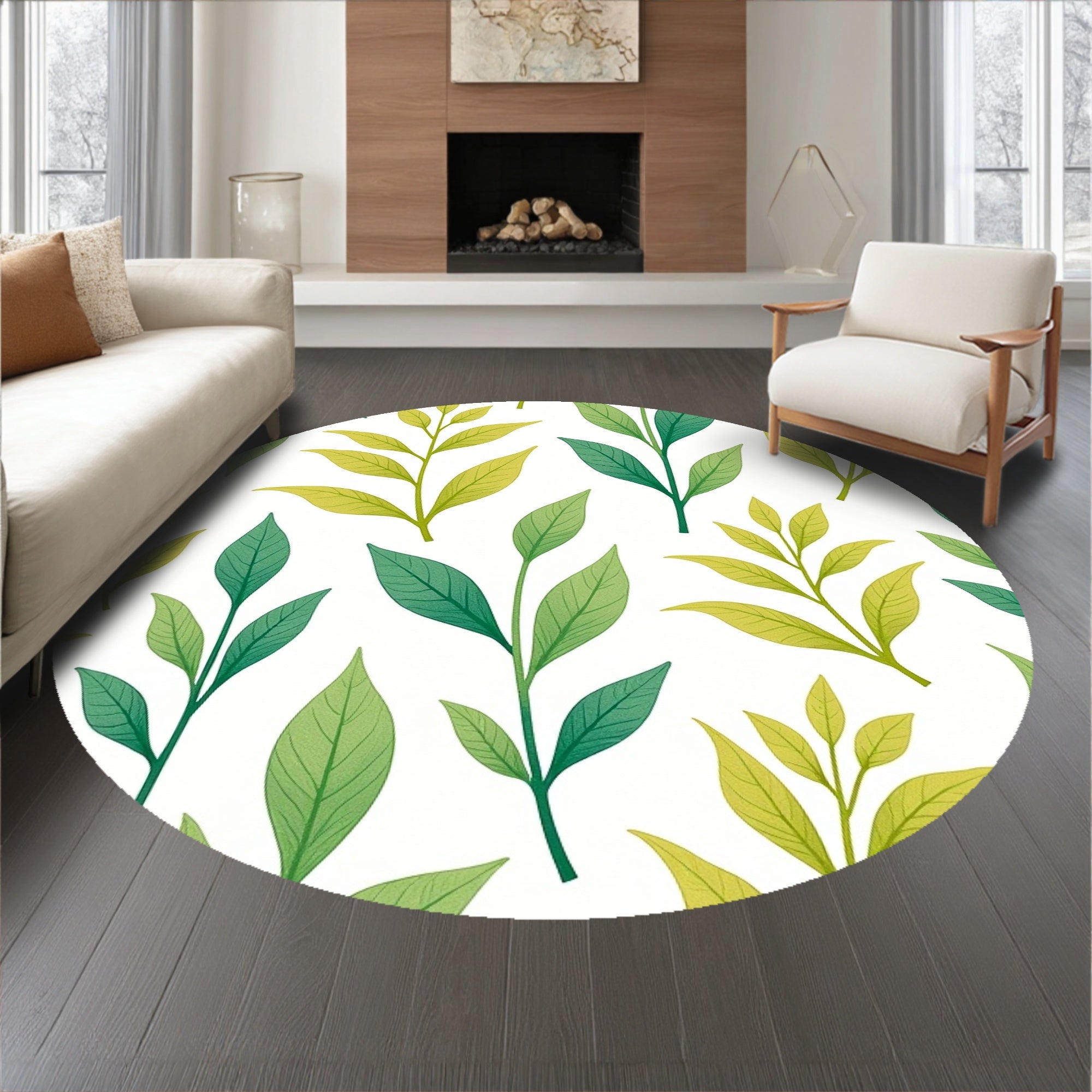 Flatwoven High Traffic Area Rug, Botanical Leaf Fronds Nursery Safe Floor Art, Non Slip, Stain Resistant, Washable Area Rugs for Living Room, Bedroom (Green) Overview: