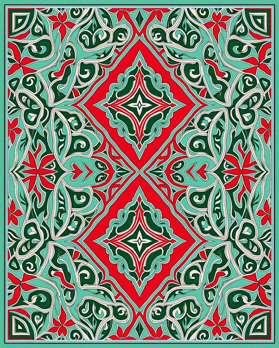 Botanical Vine Lattice Artisan Tapestry (Red)