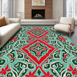 Flatwoven High Traffic Area Rug, Botanical Vine Lattice Artisan Tapestry, Non Slip, Stain Resistant, Washable Area Rugs for Living Room, Bedroom (Red) Overview: