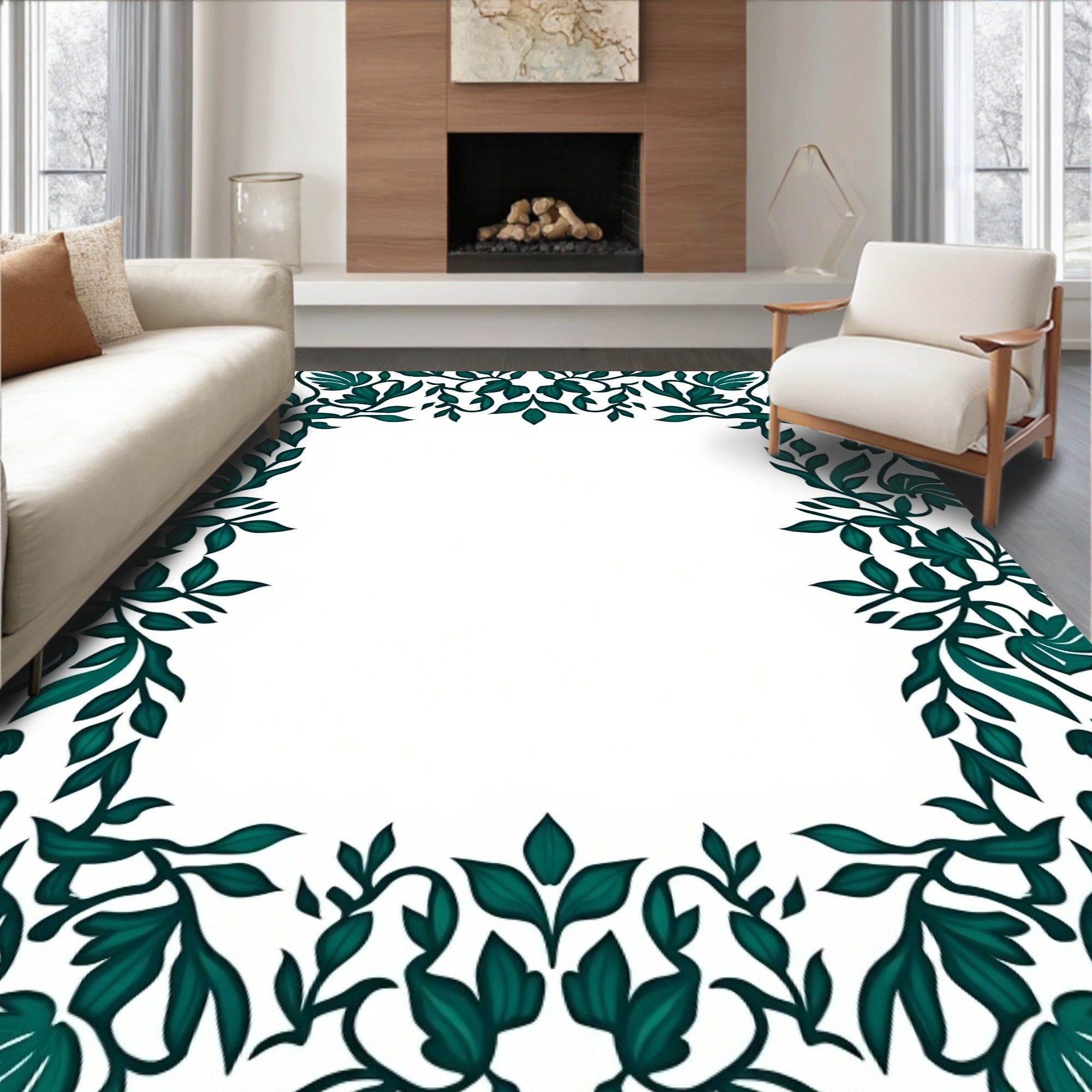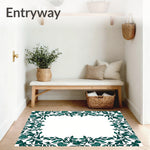 Flatwoven High Traffic Area Rug, Botanical Vine Trellis with Leaf Perimeter, Non Slip, Stain Resistant, Washable Area Rugs for Living Room, Bedroom (Green) Overview: