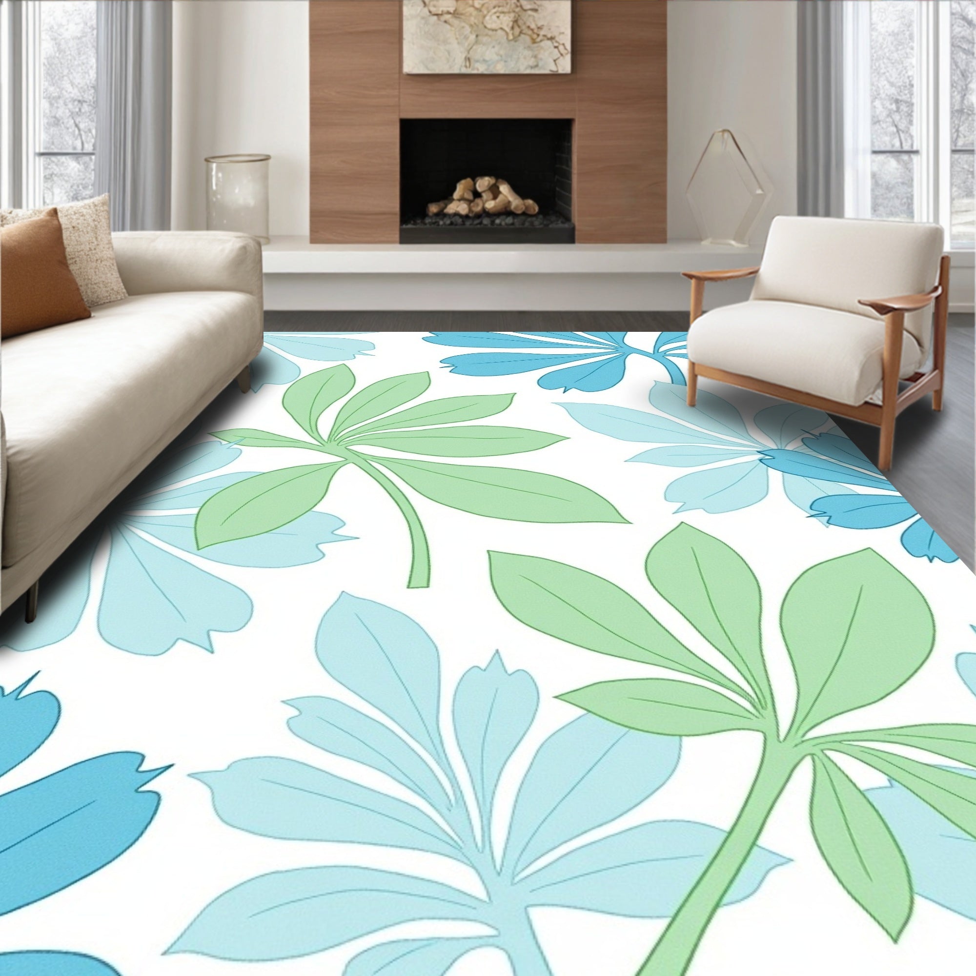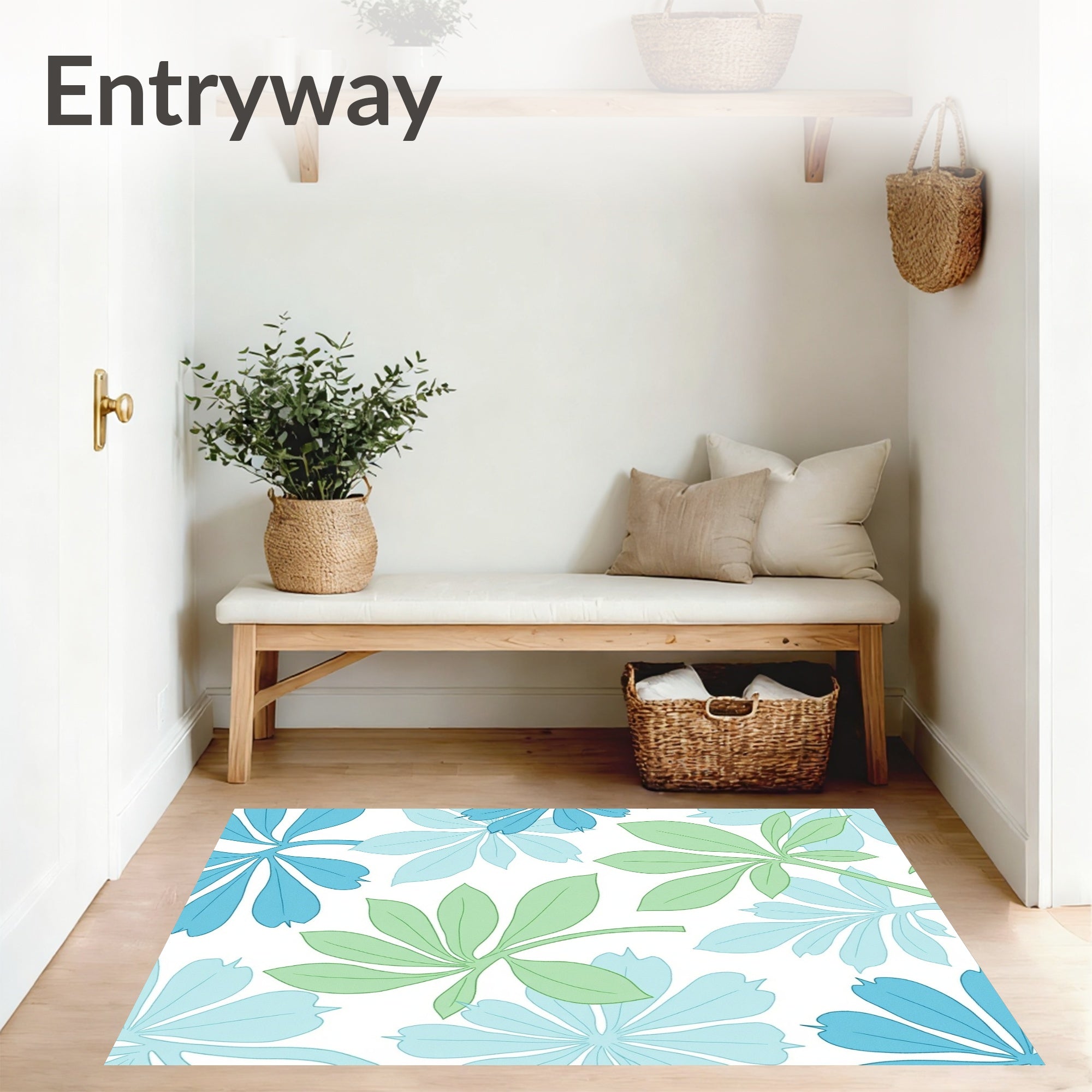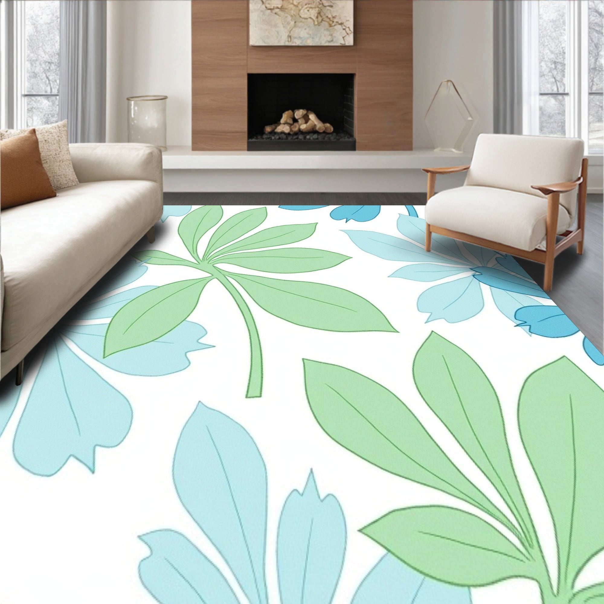 Flatwoven High Traffic Area Rug, Botanical with Whispered Leaf Accents, Non Slip, Stain Resistant, Washable Area Rugs for Living Room, Bedroom (Blue) Overview: