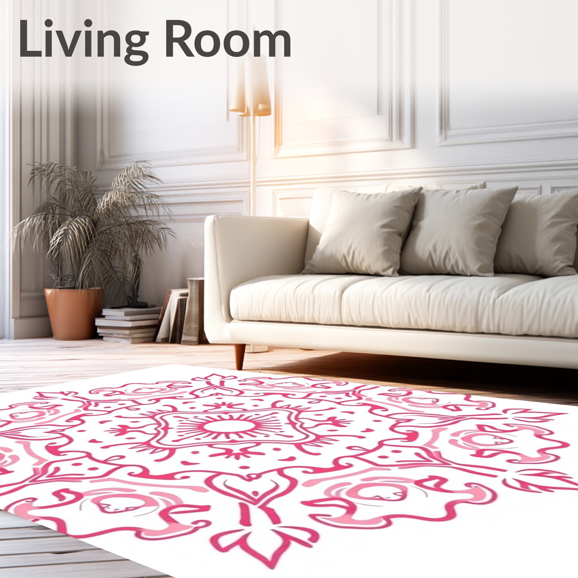 Flatwoven High Traffic Area Rug, Burst Floral Medallion Decorative with Intricate Petal Design, Non Slip, Stain Resistant, Washable Area Rugs for Living Room, Bedroom (Pink) Overview:
