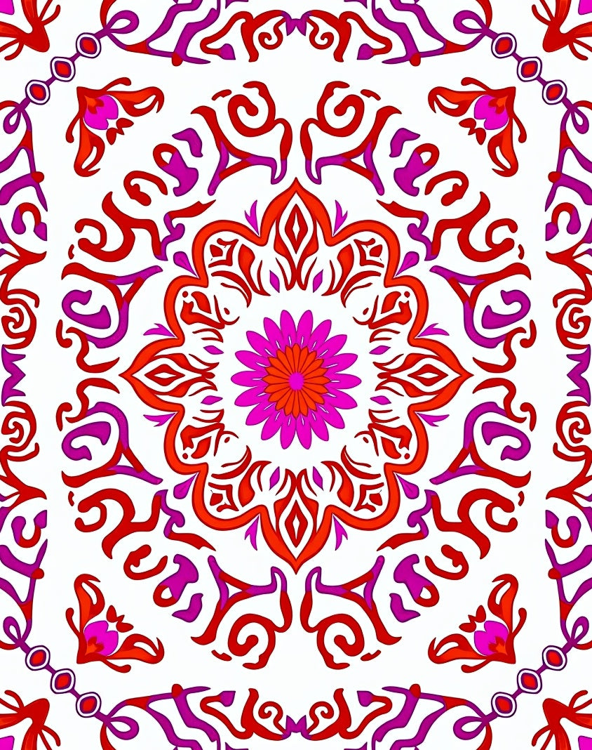 Burst Swirl with Ornate Floral Motifs (Red)