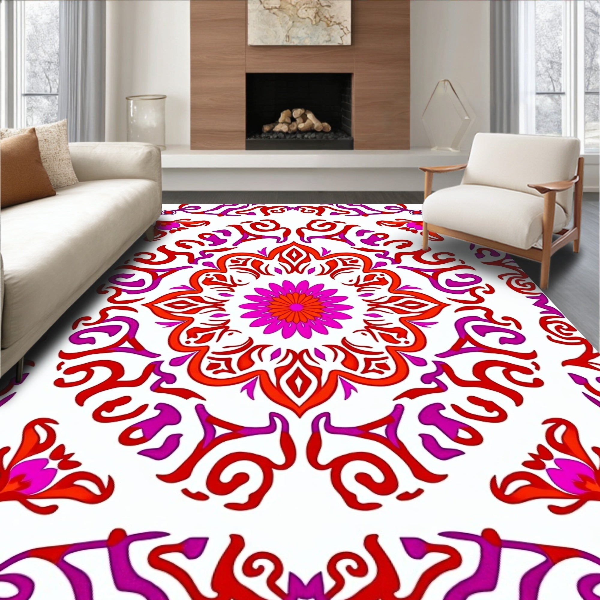 Flatwoven High Traffic Area Rug, Burst Swirl with Ornate Floral Motifs, Non Slip, Stain Resistant, Washable Area Rugs for Living Room, Bedroom (Red) Overview:
