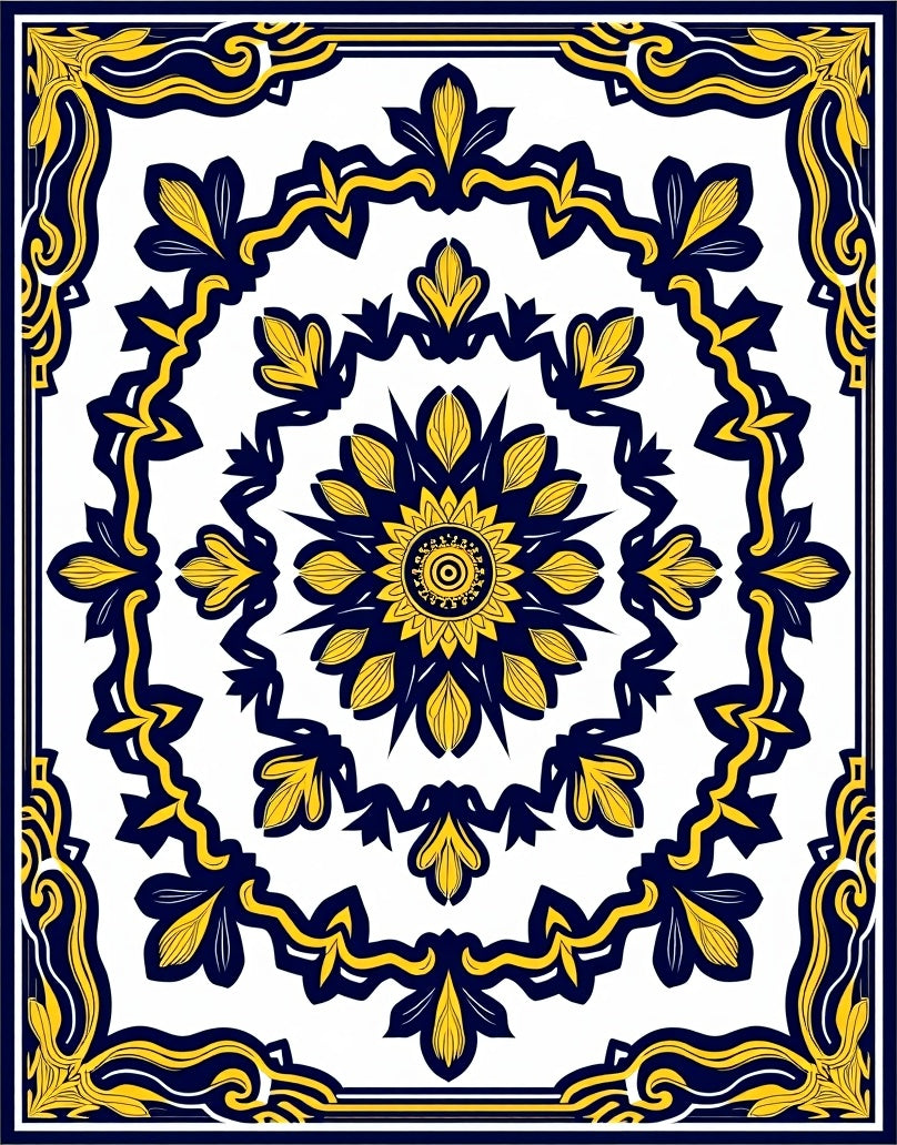 Burst Symmetrical Ornate Floral Motif Design (Yellow)