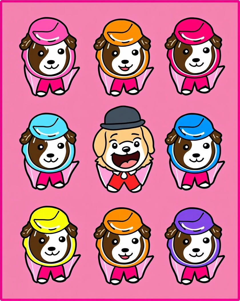 Canine Squad Team Formation with Puppy Character Portraits (Pink)