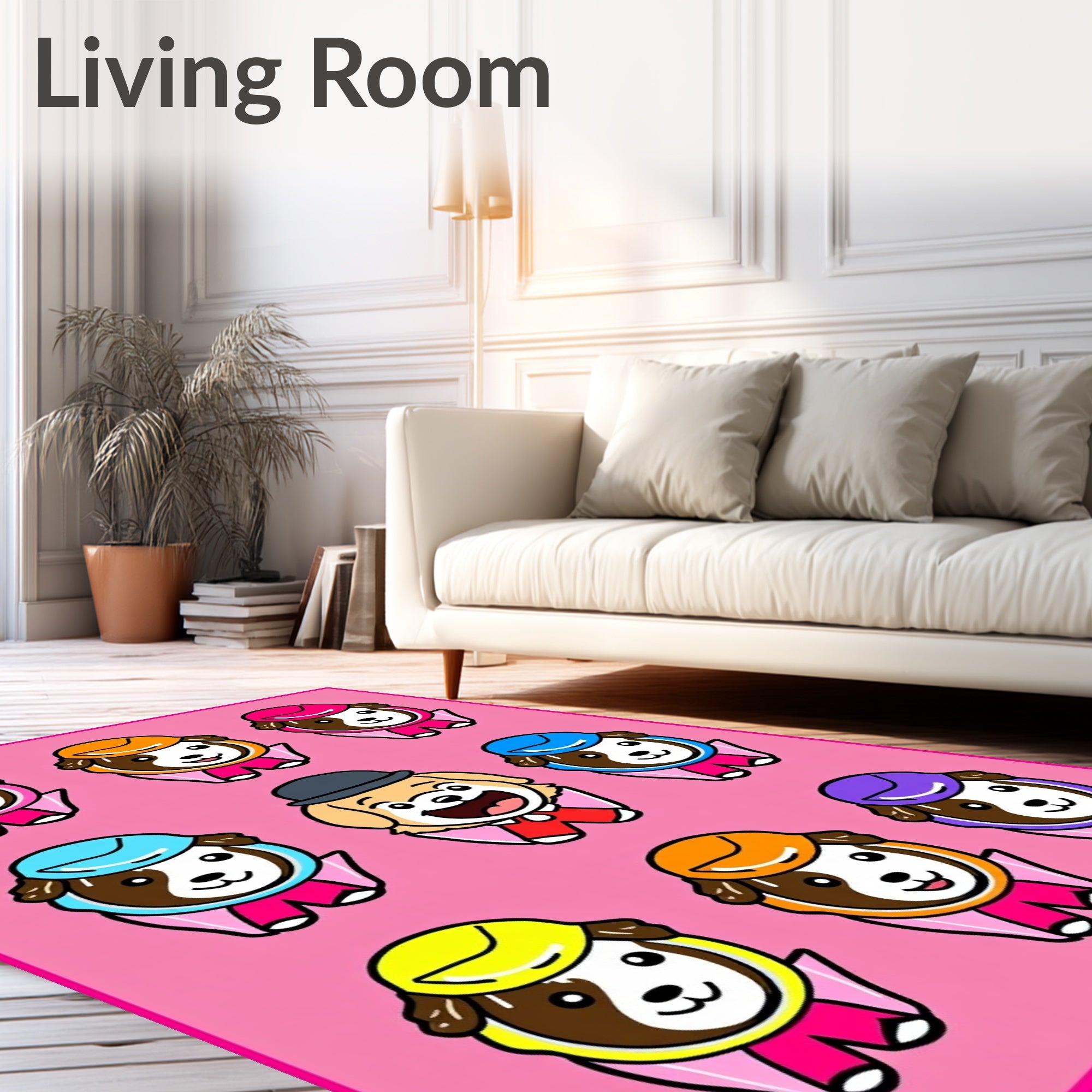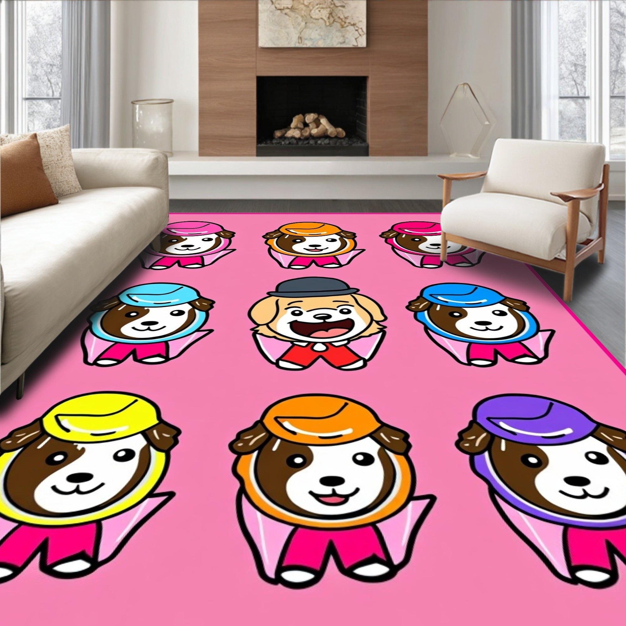 Flatwoven High Traffic Area Rug, Canine Squad Team Formation with Puppy Character Portraits, Non Slip, Stain Resistant, Washable Area Rugs for Living Room, Bedroom (Pink) Overview: