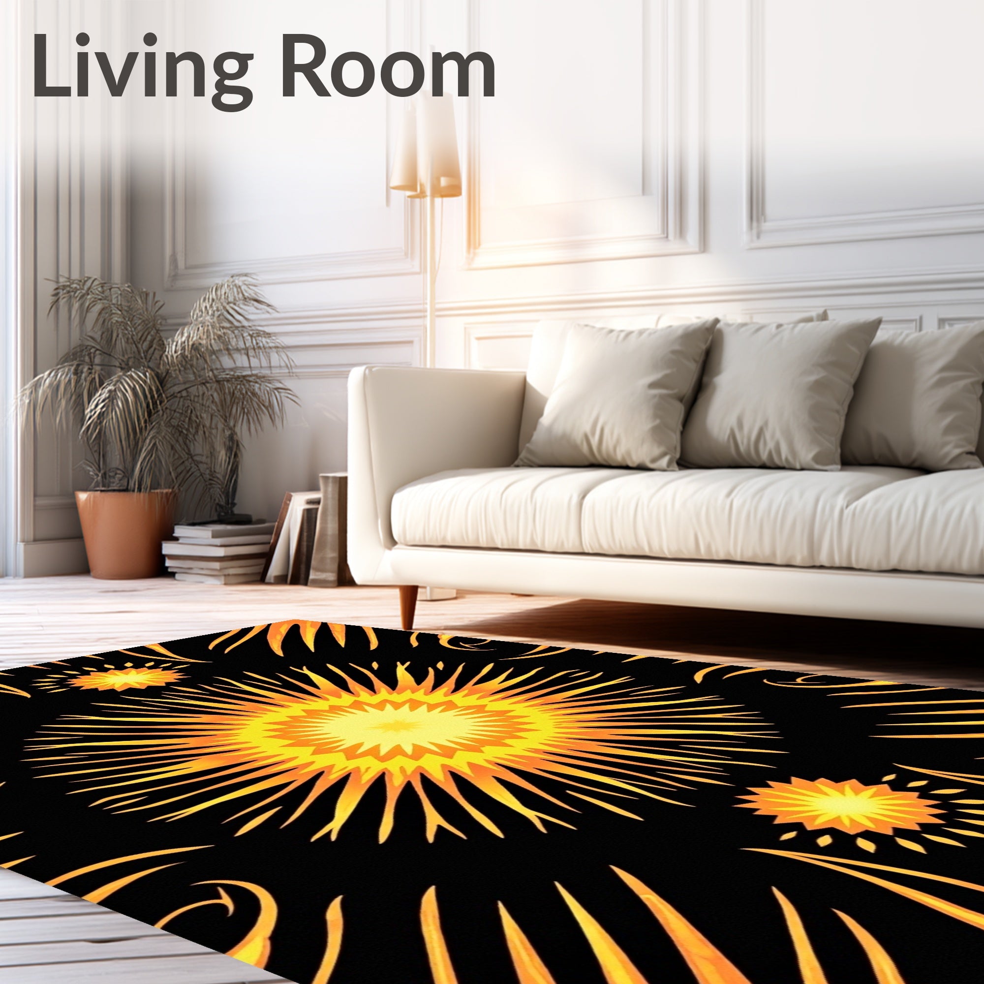 Flatwoven High Traffic Area Rug, Celestial Abstract Contemporary Artistic Motif, Non Slip, Stain Resistant, Washable Area Rugs for Living Room, Bedroom (Black) Overview: