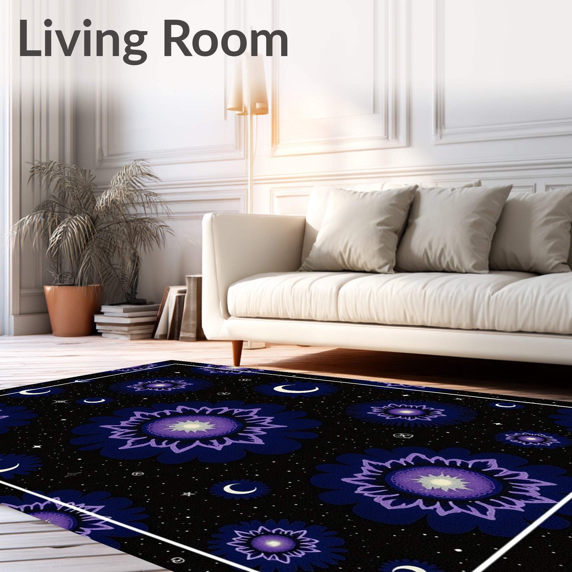 Flatwoven High Traffic Area Rug, Celestial Night Sky Radiant Cosmic Doormat Chair, Non Slip, Stain Resistant, Washable Area Rugs for Living Room, Bedroom (Black) Overview: