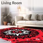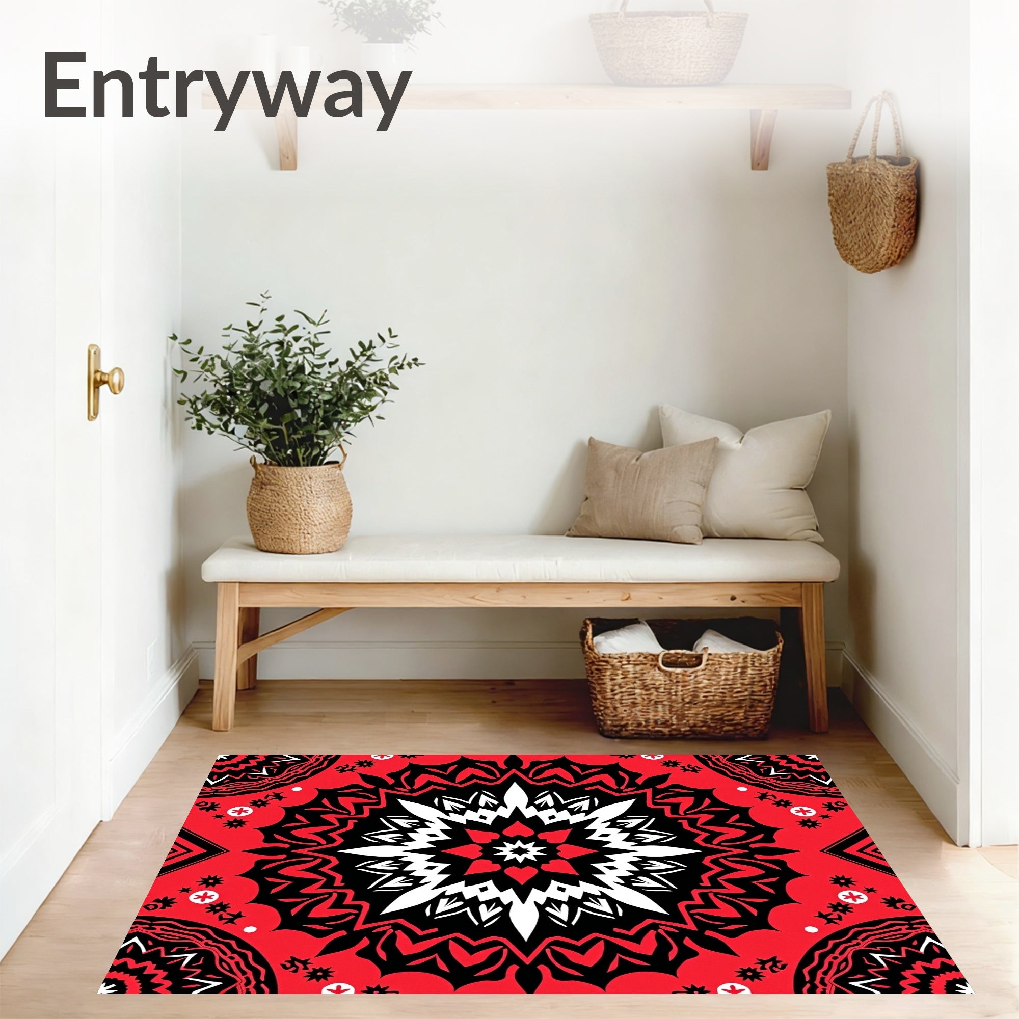 Flatwoven High Traffic Area Rug, Celestial Starburst Medallion with Boho Accents, Non Slip, Stain Resistant, Washable Area Rugs for Living Room, Bedroom (Red) Overview:
