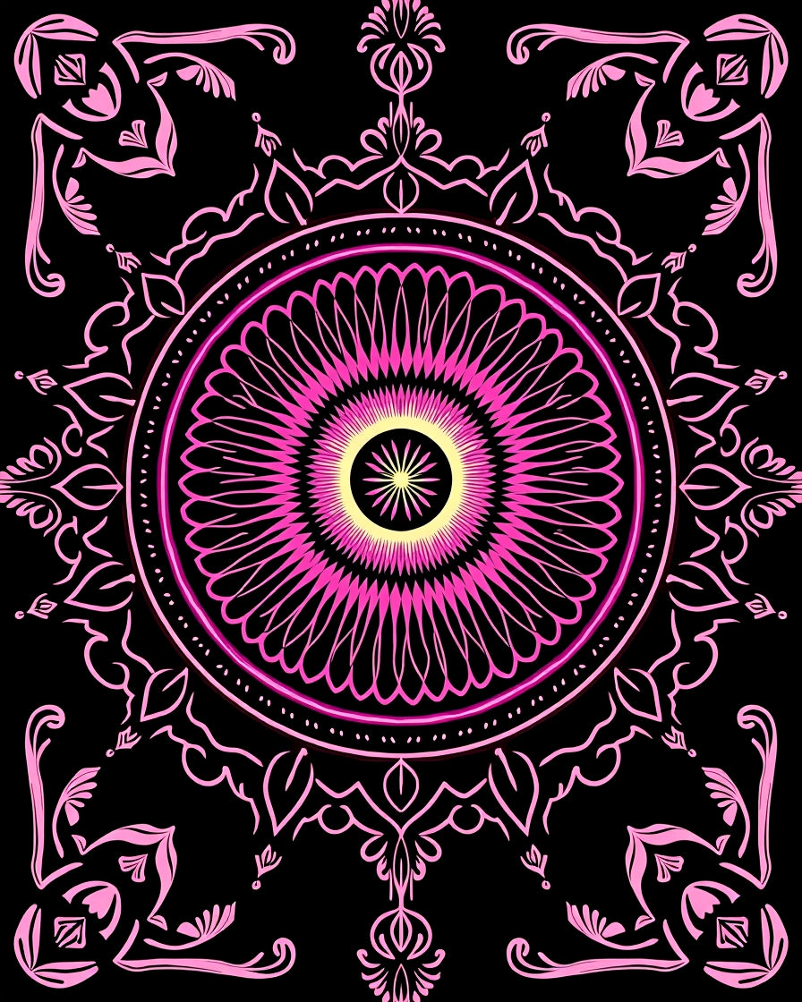 Celestial Starburst with Intricate Floral Motifs (Black)