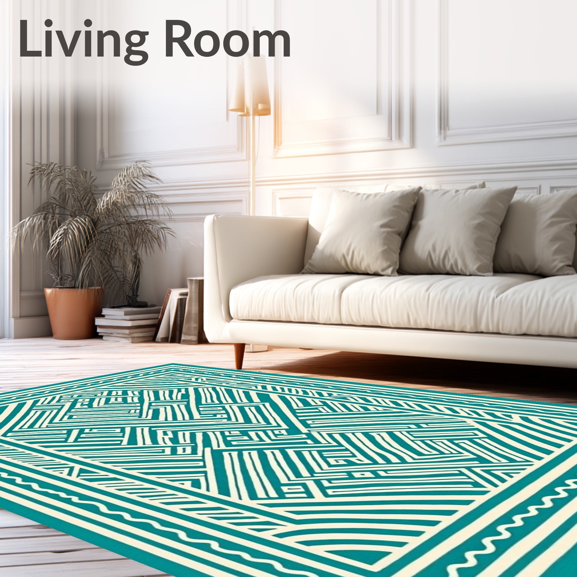 Flatwoven High Traffic Area Rug, Celtic Knot with Traditional Framework Accent, Non Slip, Stain Resistant, Washable Area Rugs for Living Room, Bedroom (Teal) Overview: