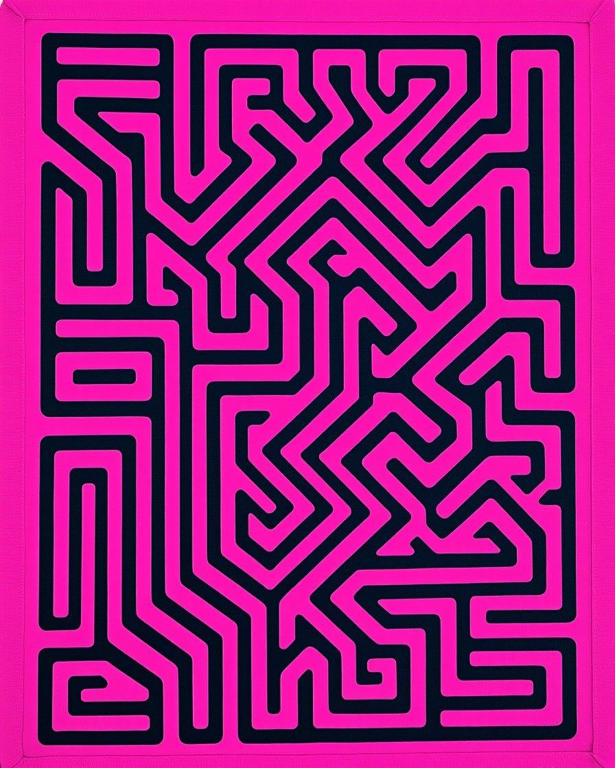 Charcoal Maze Labyrinth Print Textured (Pink)