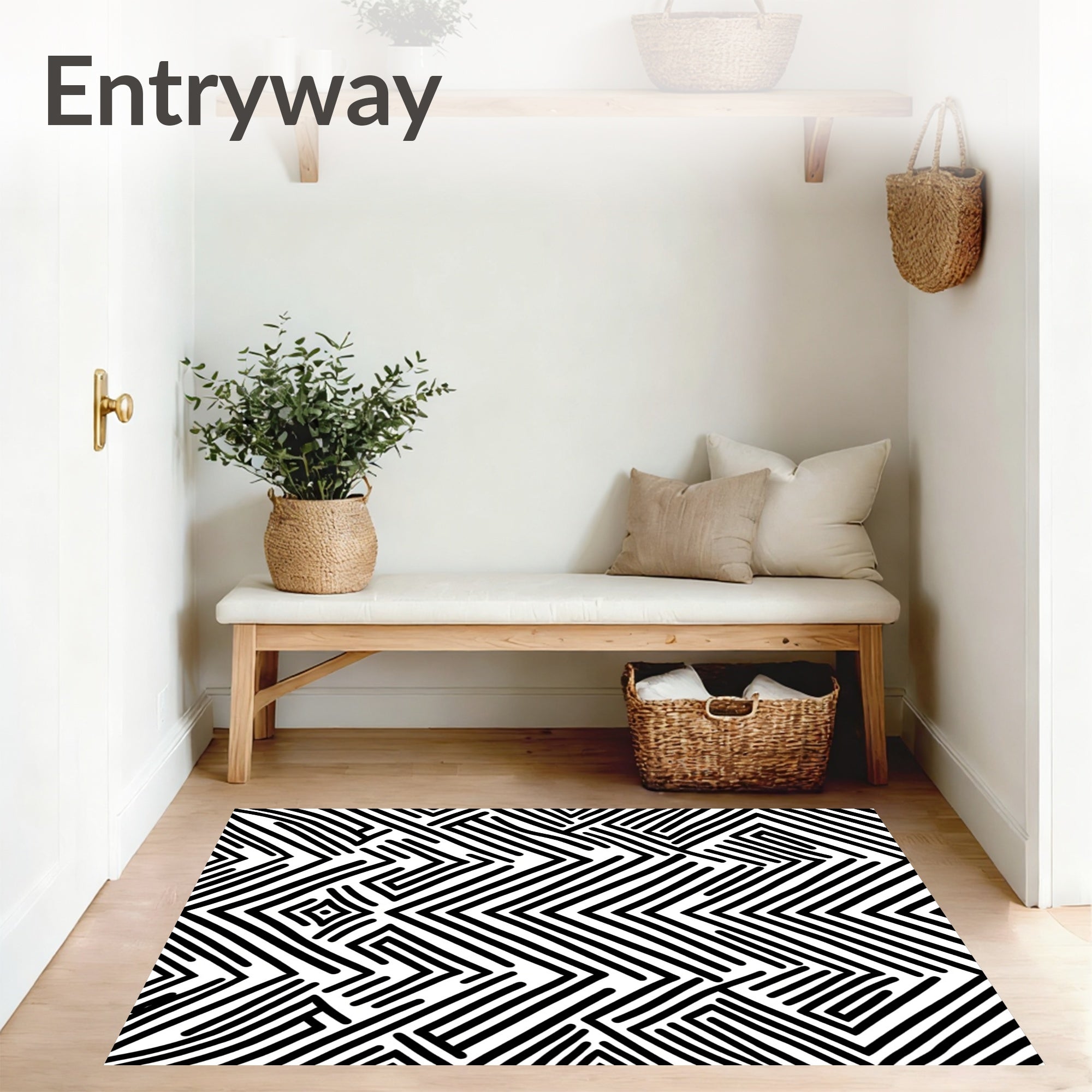 Flatwoven High Traffic Area Rug, Chevron Zigzag Welcome Entry Handwoven Doormat, Non Slip, Stain Resistant, Washable Area Rugs for Living Room, Bedroom (Black) Overview: