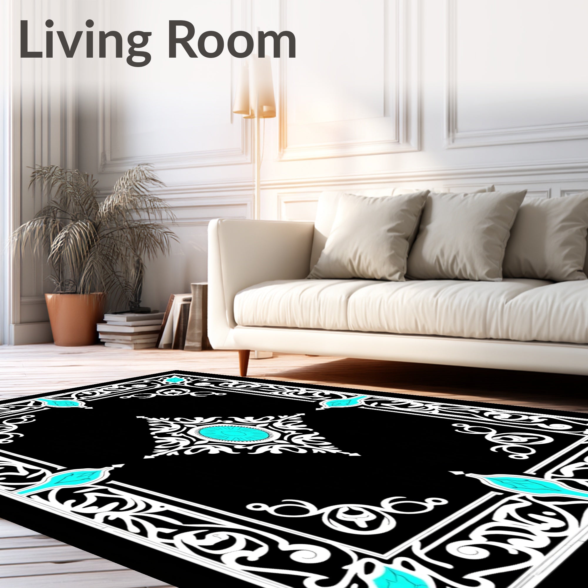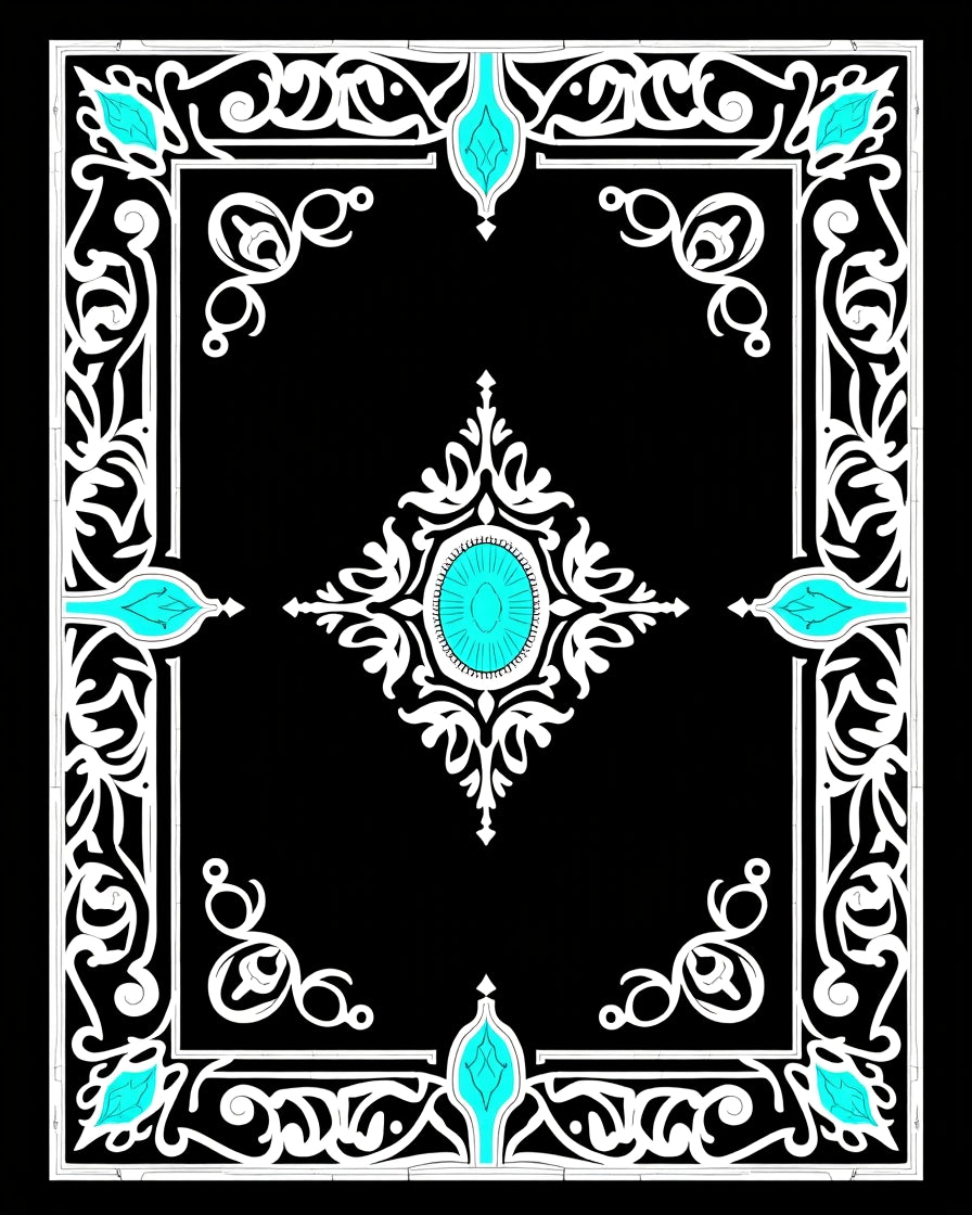 Classic Bordered Medallion with Ornate Scrollwork Accents (Black)
