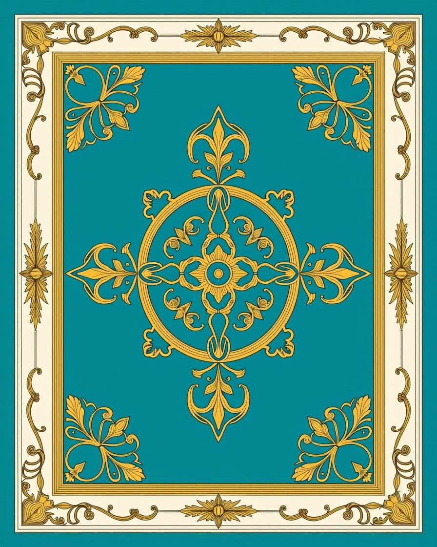Classic Damask Scrollwork with Elegant Framed Edge Accent (Teal)