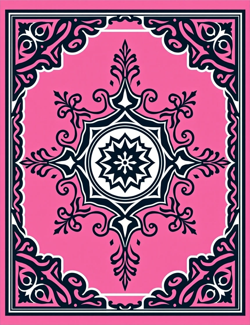 Classic Medallion Featuring Ornate Floral Scrolls and Interlocking Motifs (Pink)