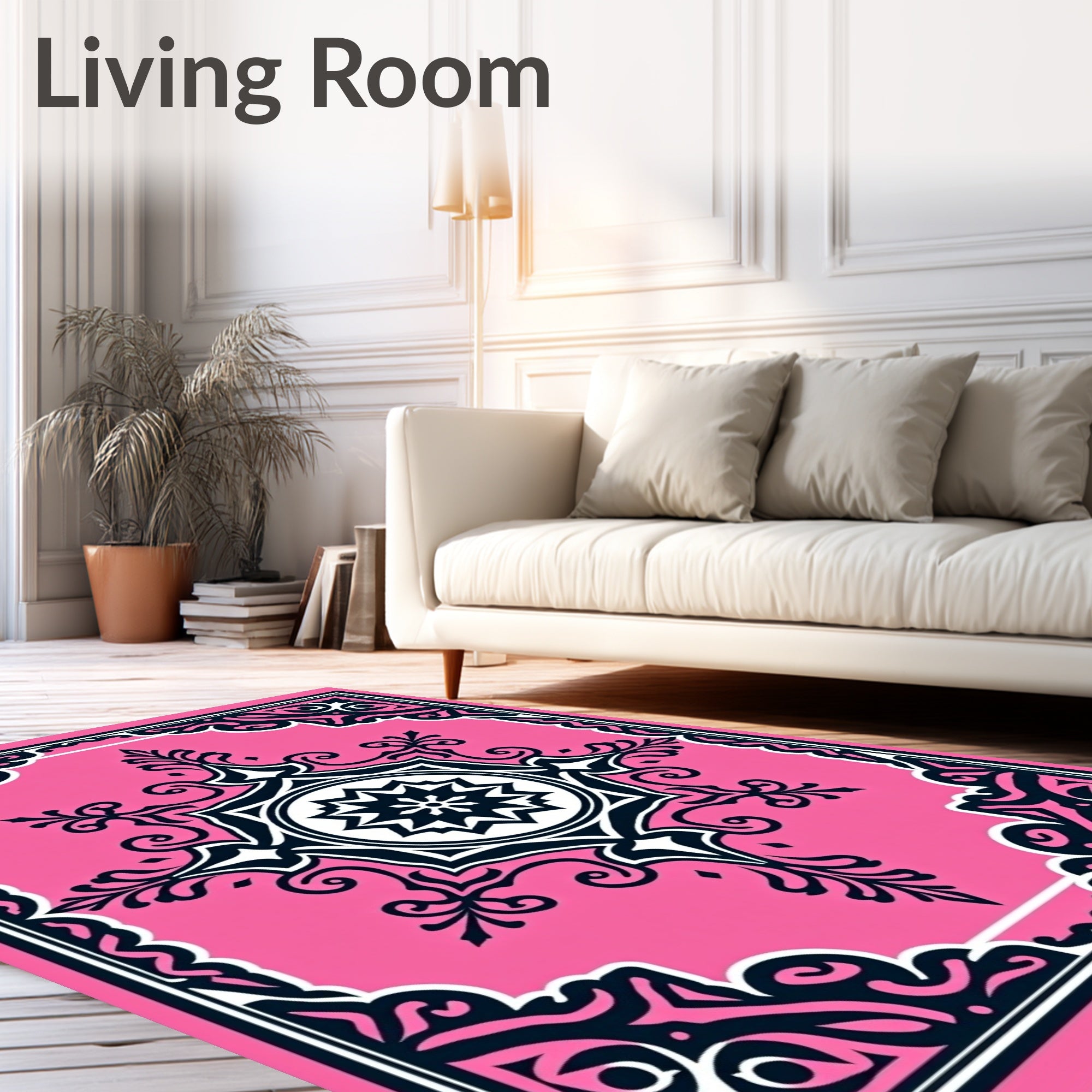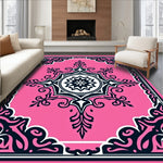 Flatwoven High Traffic Area Rug, Classic Medallion Featuring Ornate Floral Scrolls and Interlocking Motifs, Non Slip, Stain Resistant, Washable Area Rugs for Living Room, Bedroom (Pink) Overview: