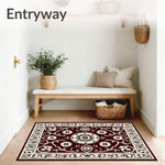 Flatwoven High Traffic Area Rug, Classic Palmette With Intricate Floral Trellis and Scroll Accents, Non Slip, Stain Resistant, Washable Area Rugs for Living Room, Bedroom (Brown) Overview: