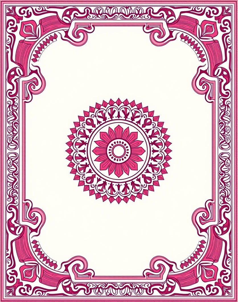 Classic Spanish Revival Medallion with Ornate Floral and Scroll (Pink)