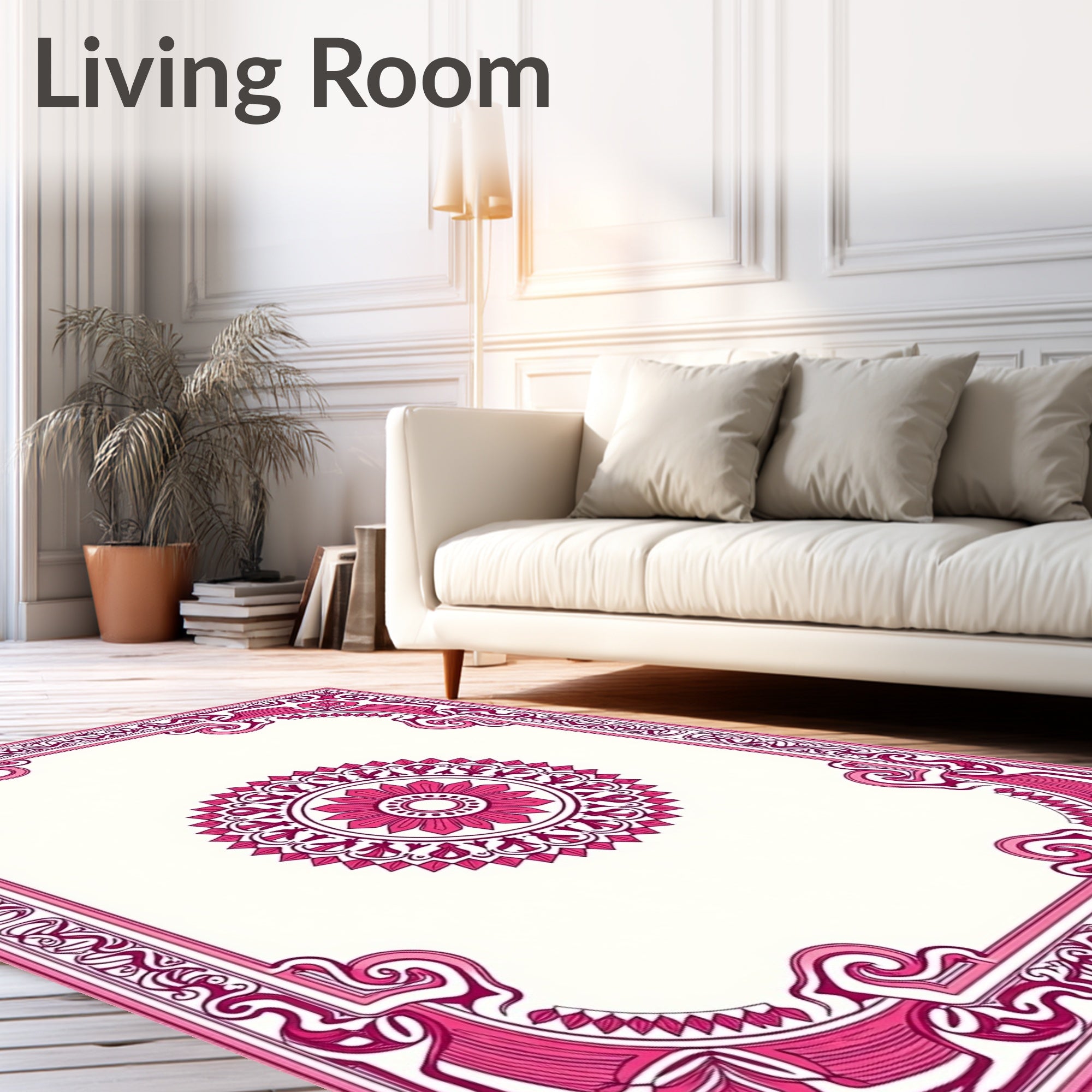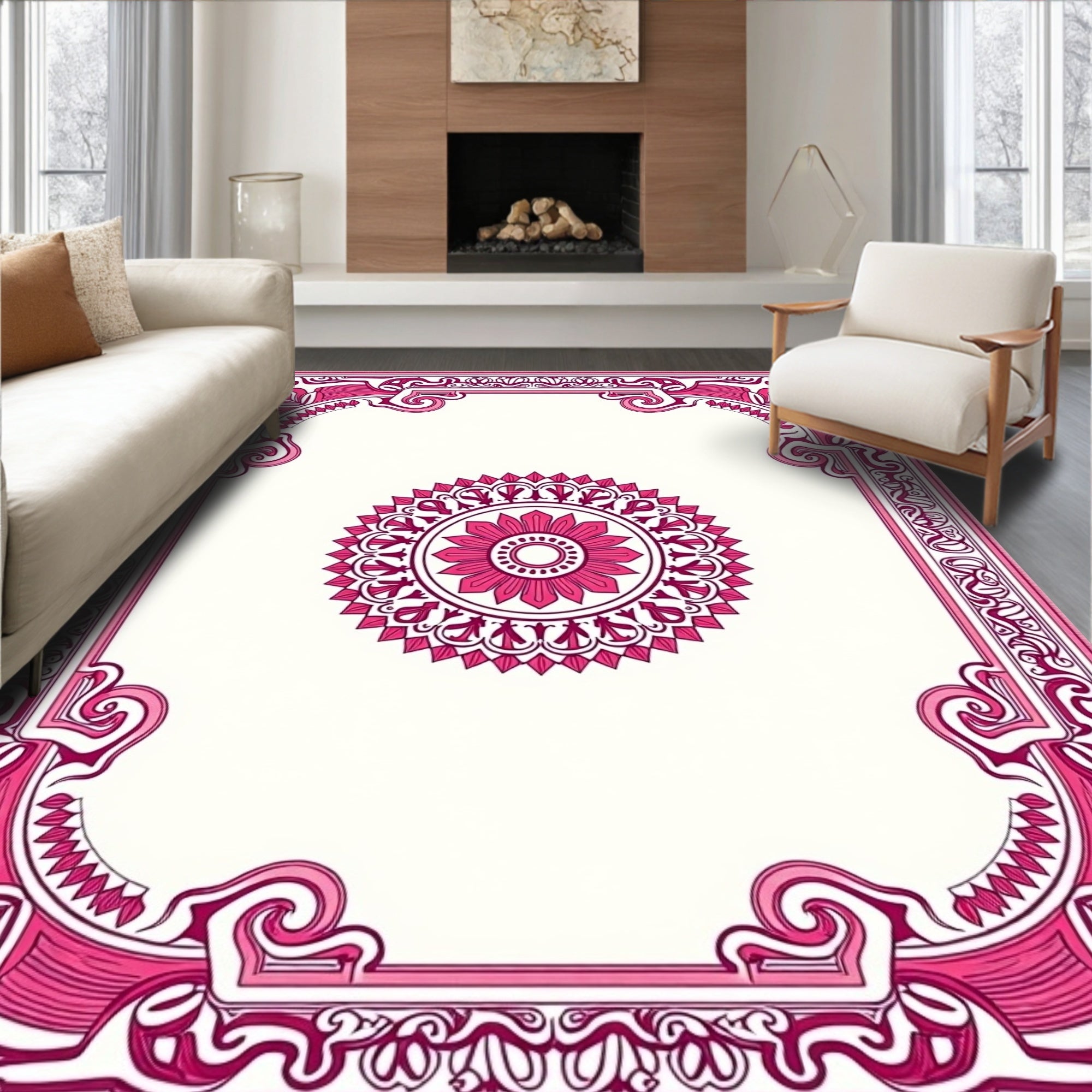 Flatwoven High Traffic Area Rug, Classic Spanish Revival Medallion with Ornate Floral and Scroll, Non Slip, Stain Resistant, Washable Area Rugs for Living Room, Bedroom (Pink) Overview: