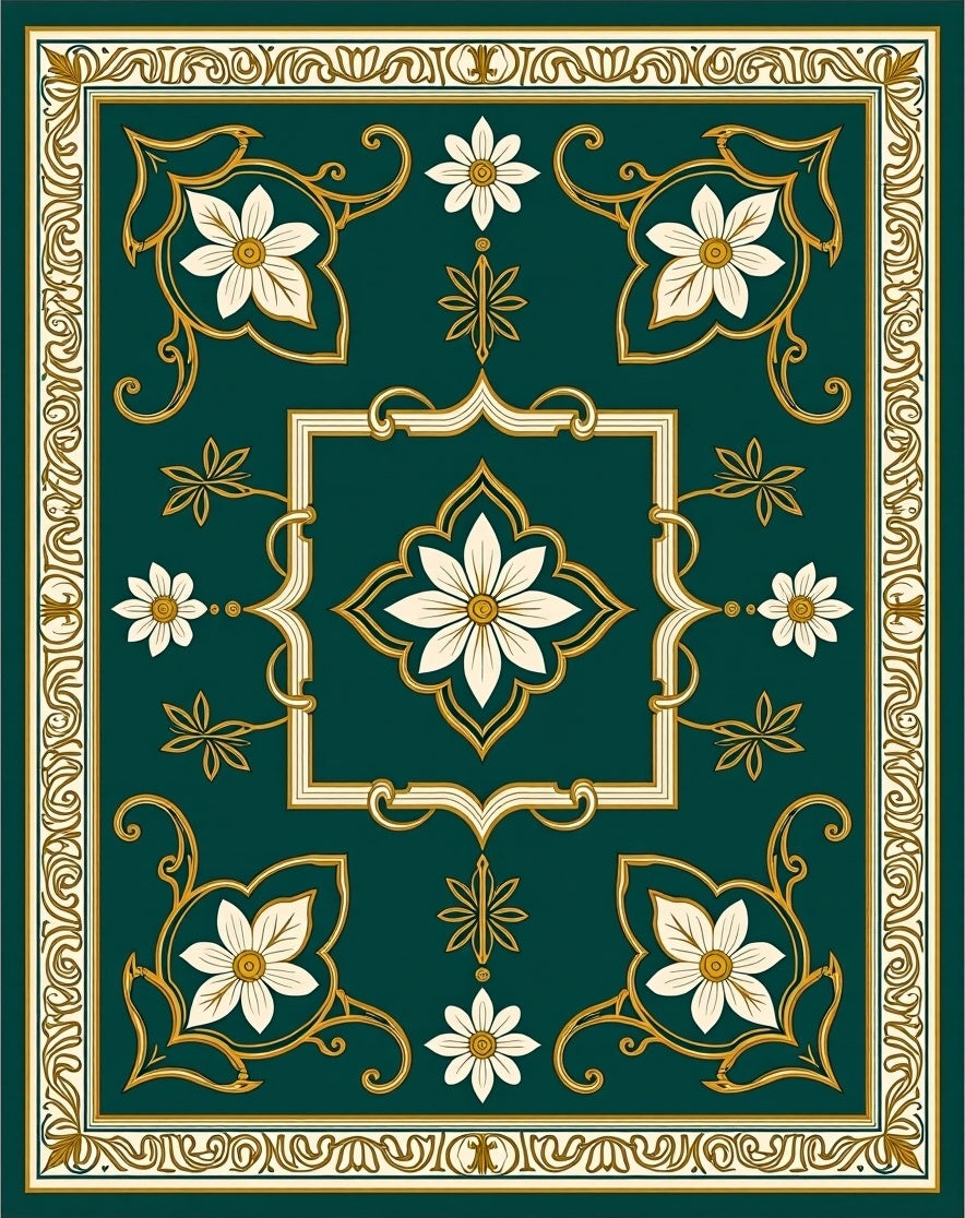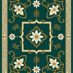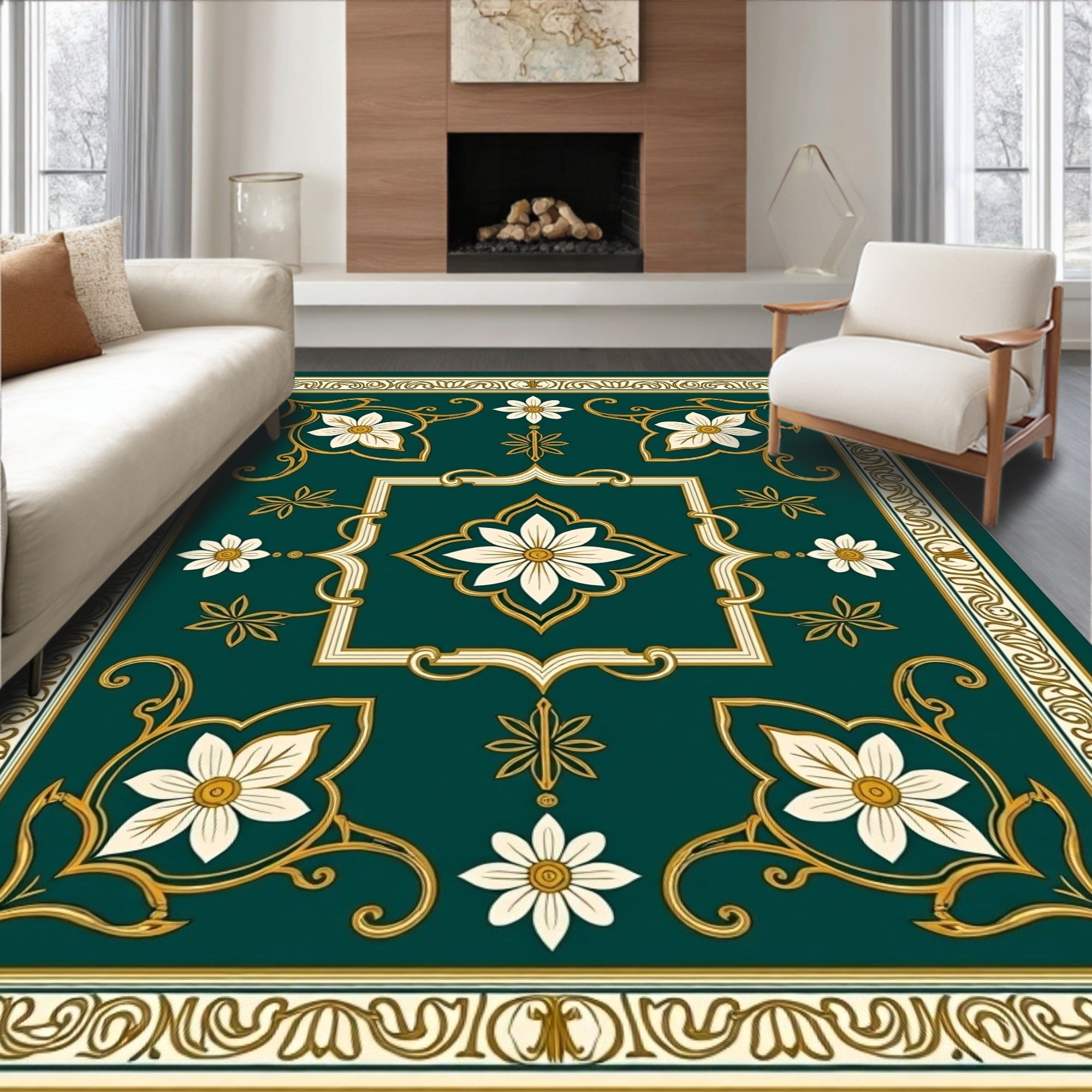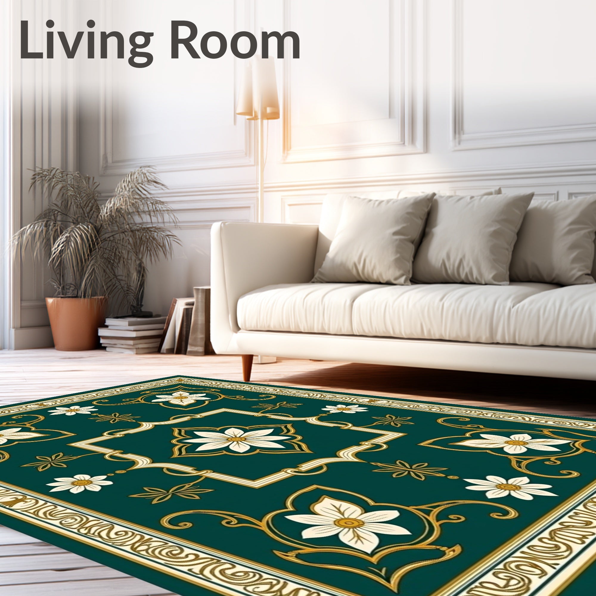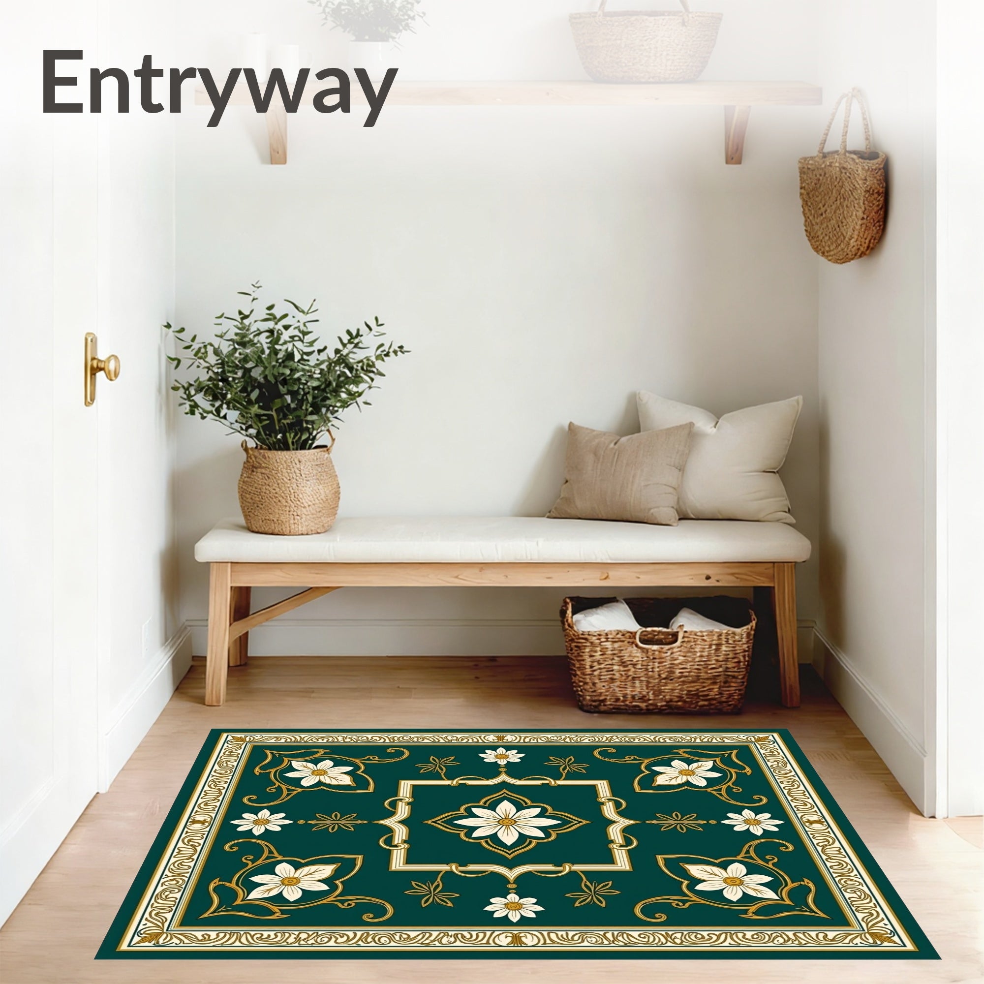 Flatwoven High Traffic Area Rug, Classical Damask Blossom Arrangement With Intricate Details, Non Slip, Stain Resistant, Washable Area Rugs for Living Room, Bedroom (Green) Overview: