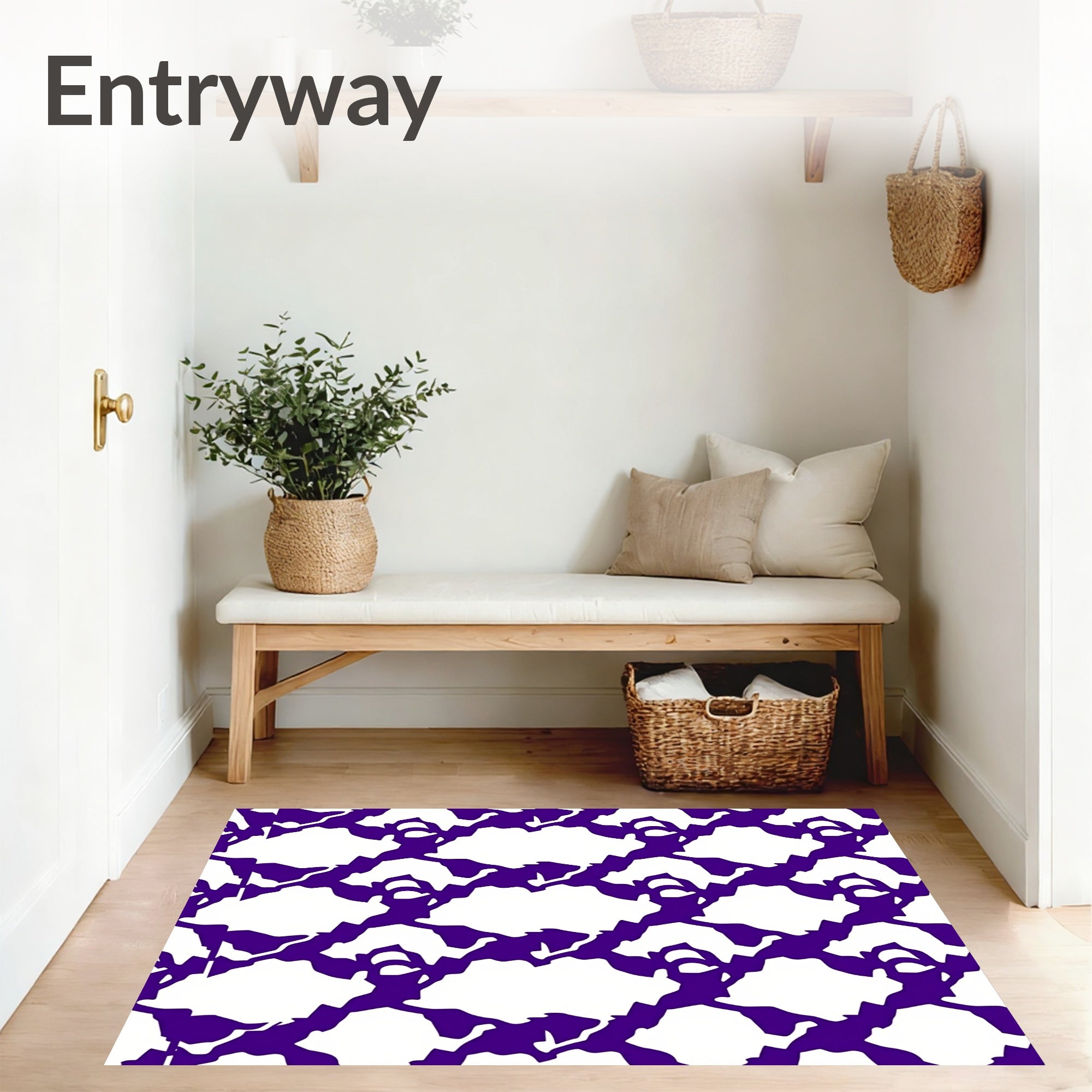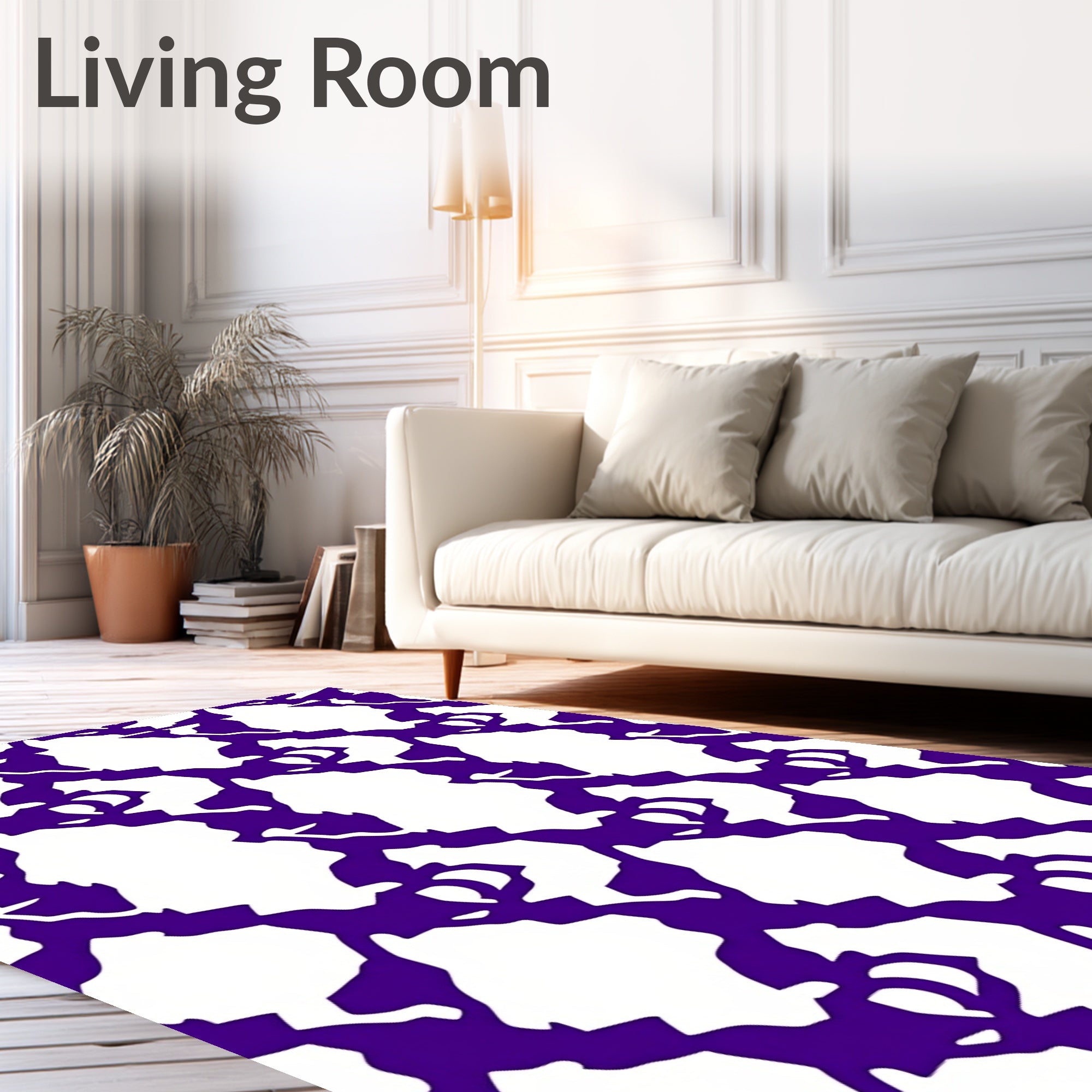 Flatwoven High Traffic Area Rug, Classical Grid Interlocking Harmonious Balanced, Non Slip, Stain Resistant, Washable Area Rugs for Living Room, Bedroom (Purple) Overview: