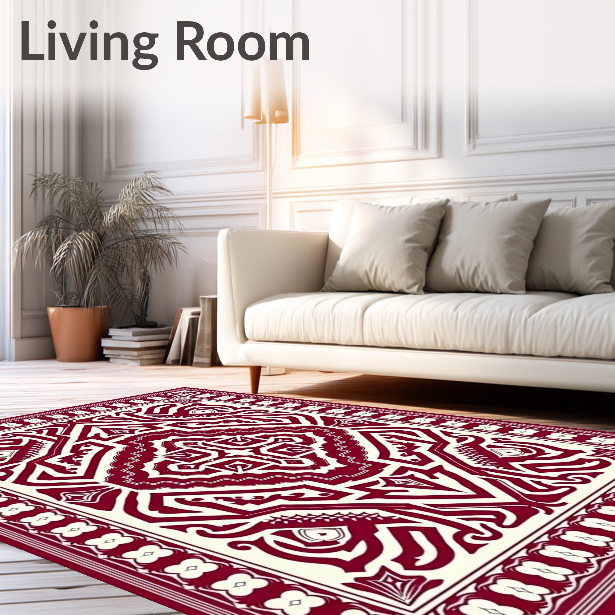 Flatwoven High Traffic Area Rug, Classical Maze Kaleidoscope Sophisticated Enchanting Wonder, Non Slip, Stain Resistant, Washable Area Rugs for Living Room, Bedroom (Ivory) Overview: