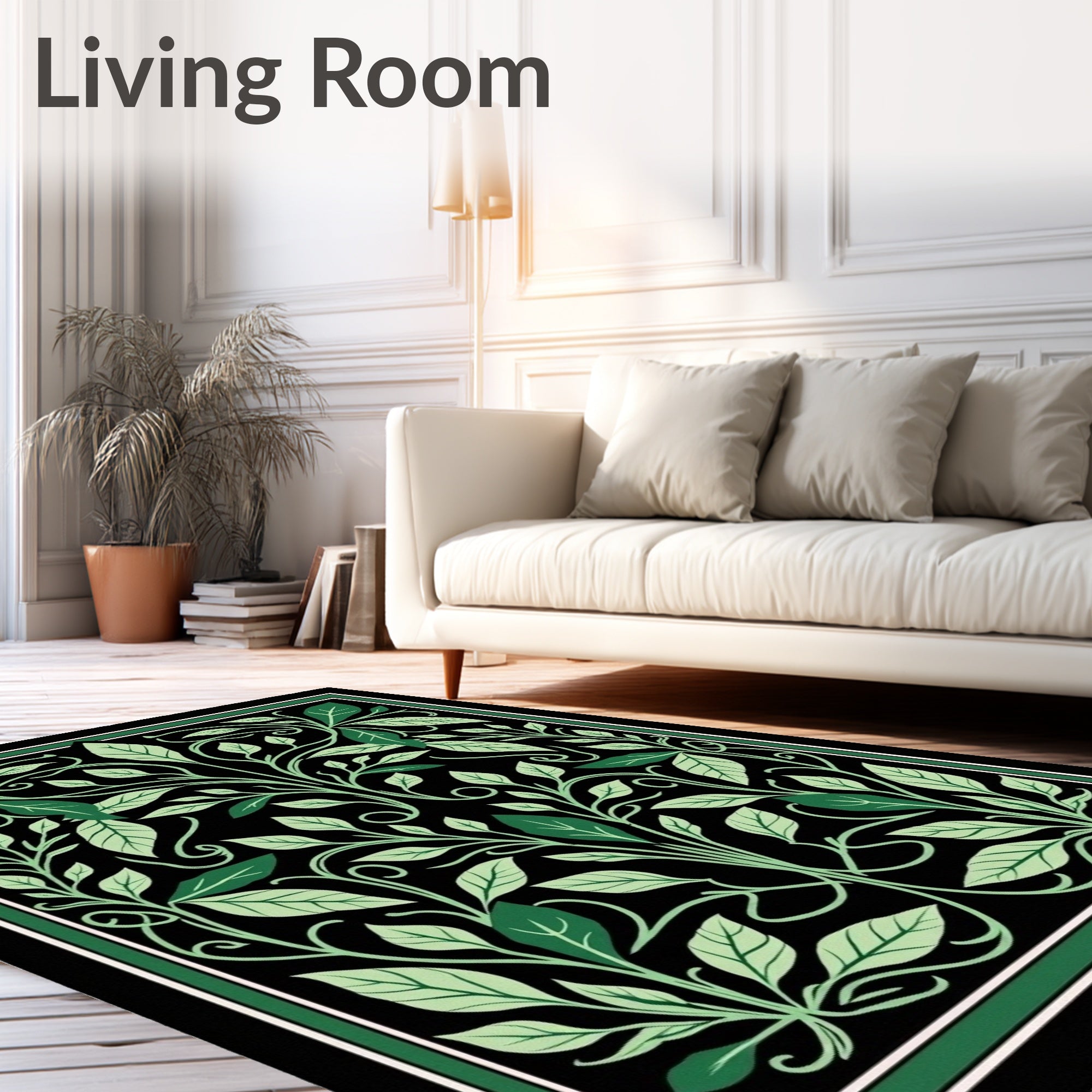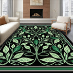 Flatwoven High Traffic Area Rug, Cleaning Station Botanical Welcome with Leaf Vein Network Design, Non Slip, Stain Resistant, Washable Area Rugs for Living Room, Bedroom (Black) Overview: