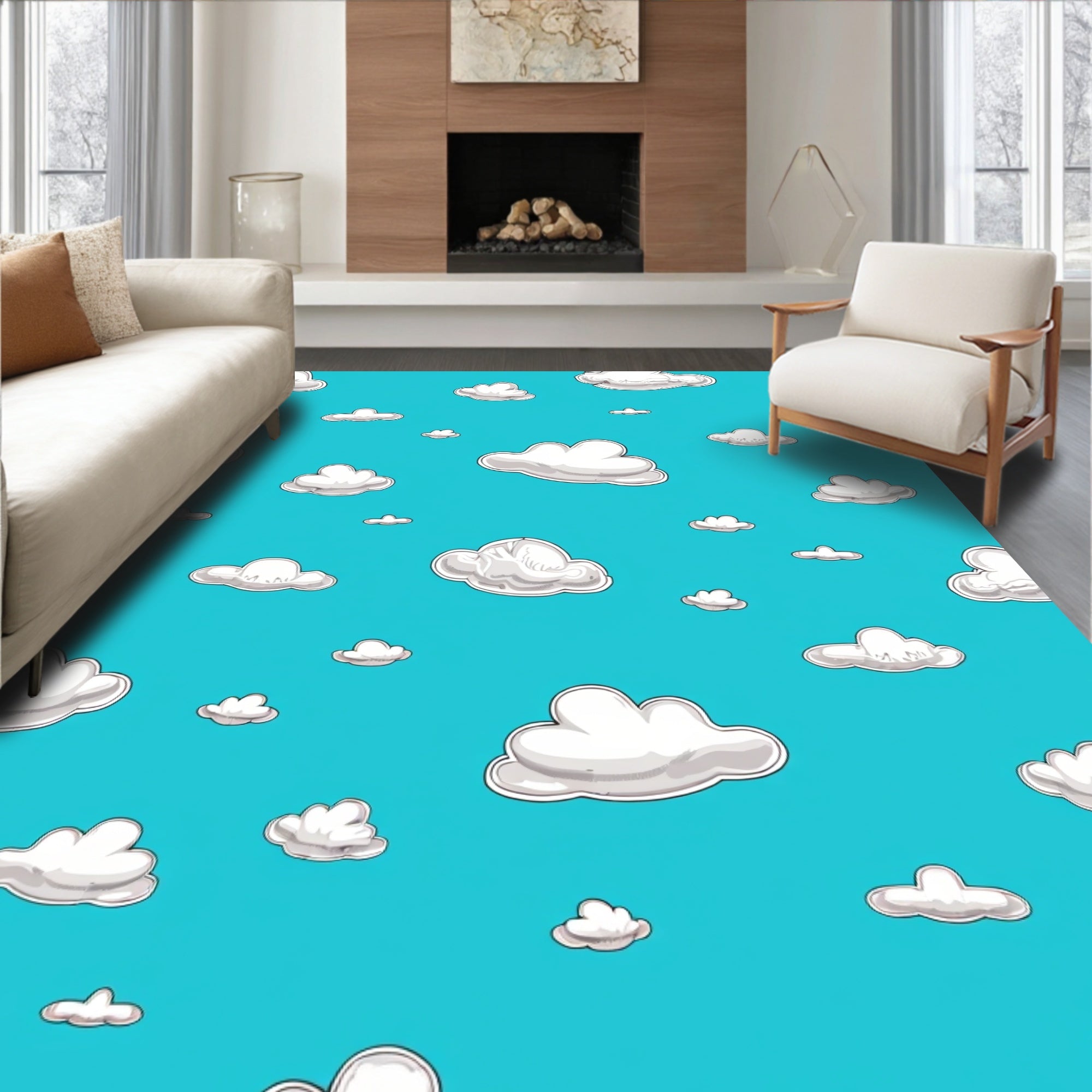 Flatwoven High Traffic Area Rug, Cloud Dreamscape Floating Puffs Easy Clean Safe, Non Slip, Stain Resistant, Washable Area Rugs for Living Room, Bedroom (Blue) Overview: