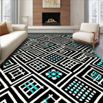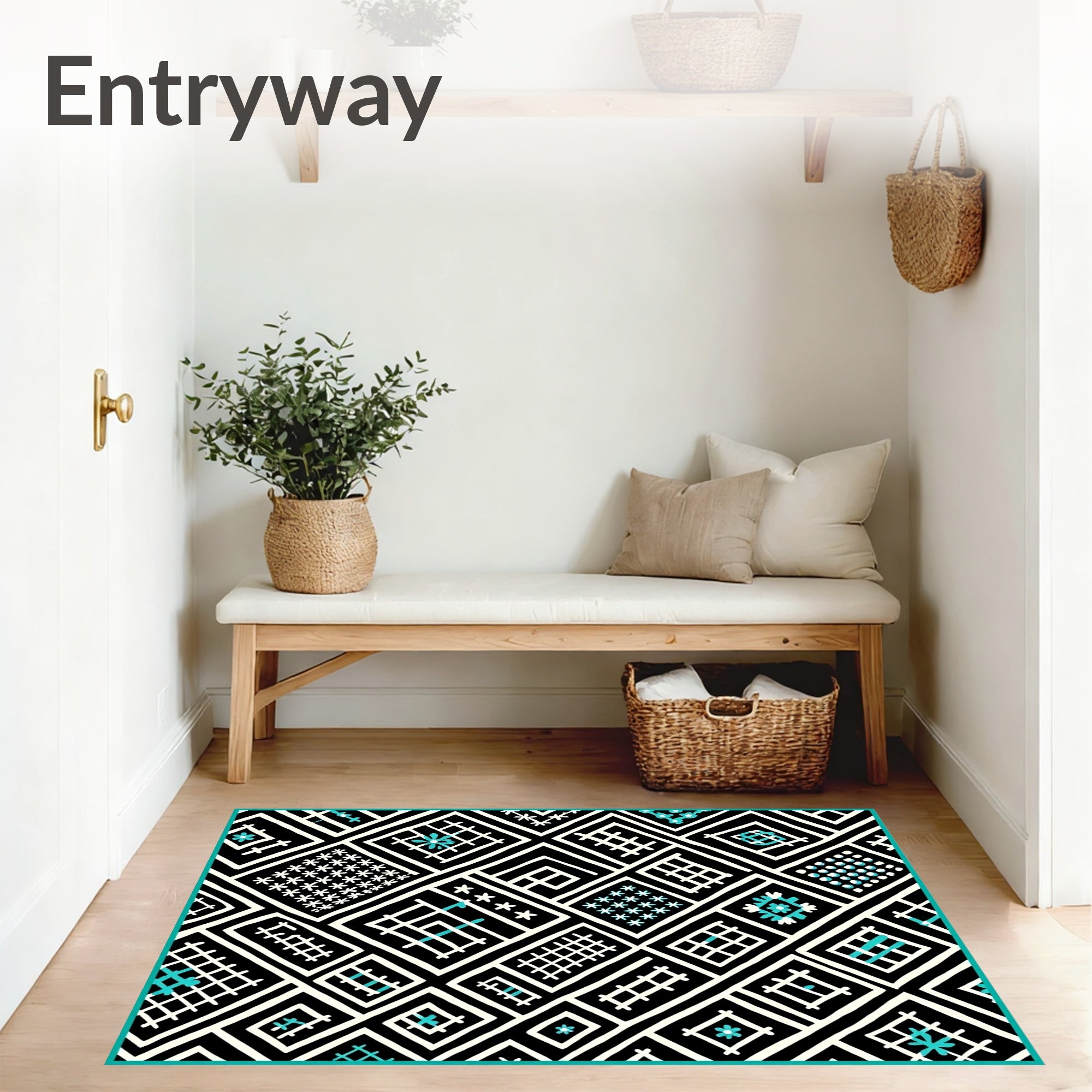 Flatwoven High Traffic Area Rug, Contemporary Boho Featuring Abstract Floral Symbols, Non Slip, Stain Resistant, Washable Area Rugs for Living Room, Bedroom (Black) Overview: