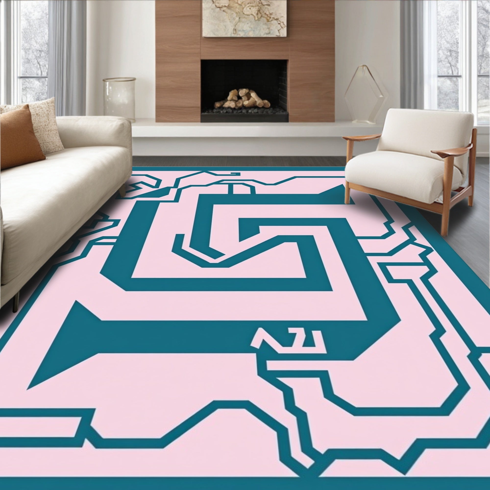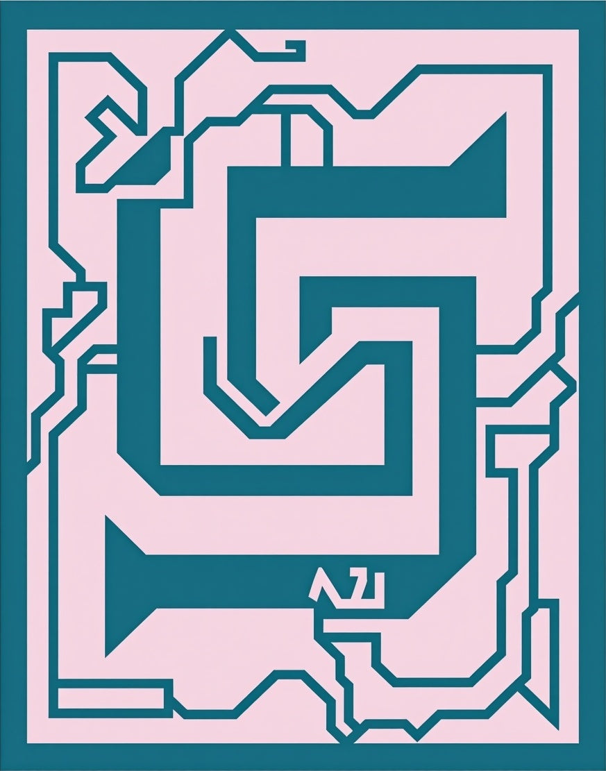 Contemporary Maze Motif with Interlocking Angles and Streamlined Abstract Shapes (Pink)
