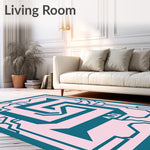 Flatwoven High Traffic Area Rug, Contemporary Maze Motif with Interlocking Angles and Streamlined Abstract Shapes, Non Slip, Stain Resistant, Washable Area Rugs for Living Room, Bedroom (Pink) Overview: