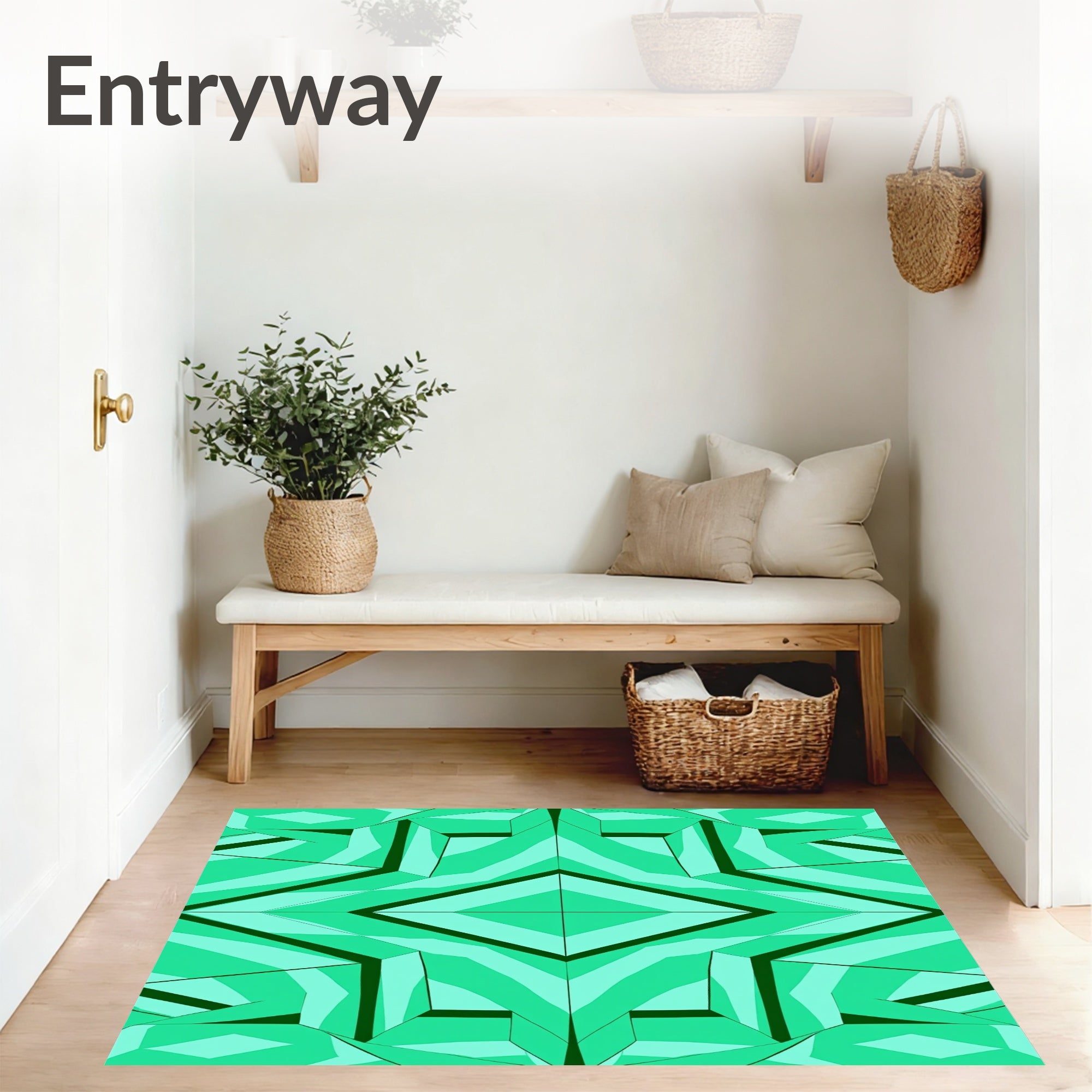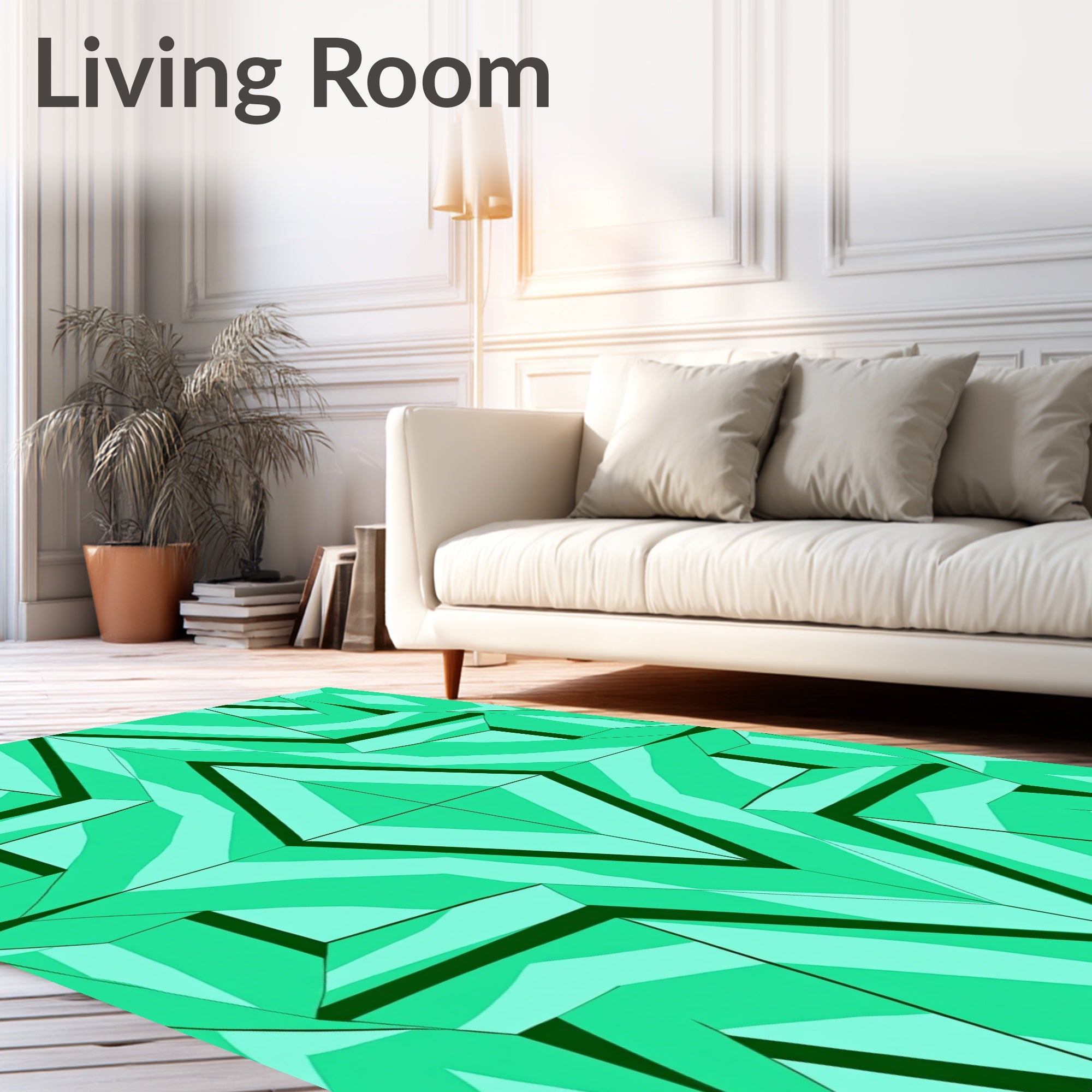 Flatwoven High Traffic Area Rug, Crystalline Faceted with Prism Like Angles, Non Slip, Stain Resistant, Washable Area Rugs for Living Room, Bedroom (Green) Overview:
