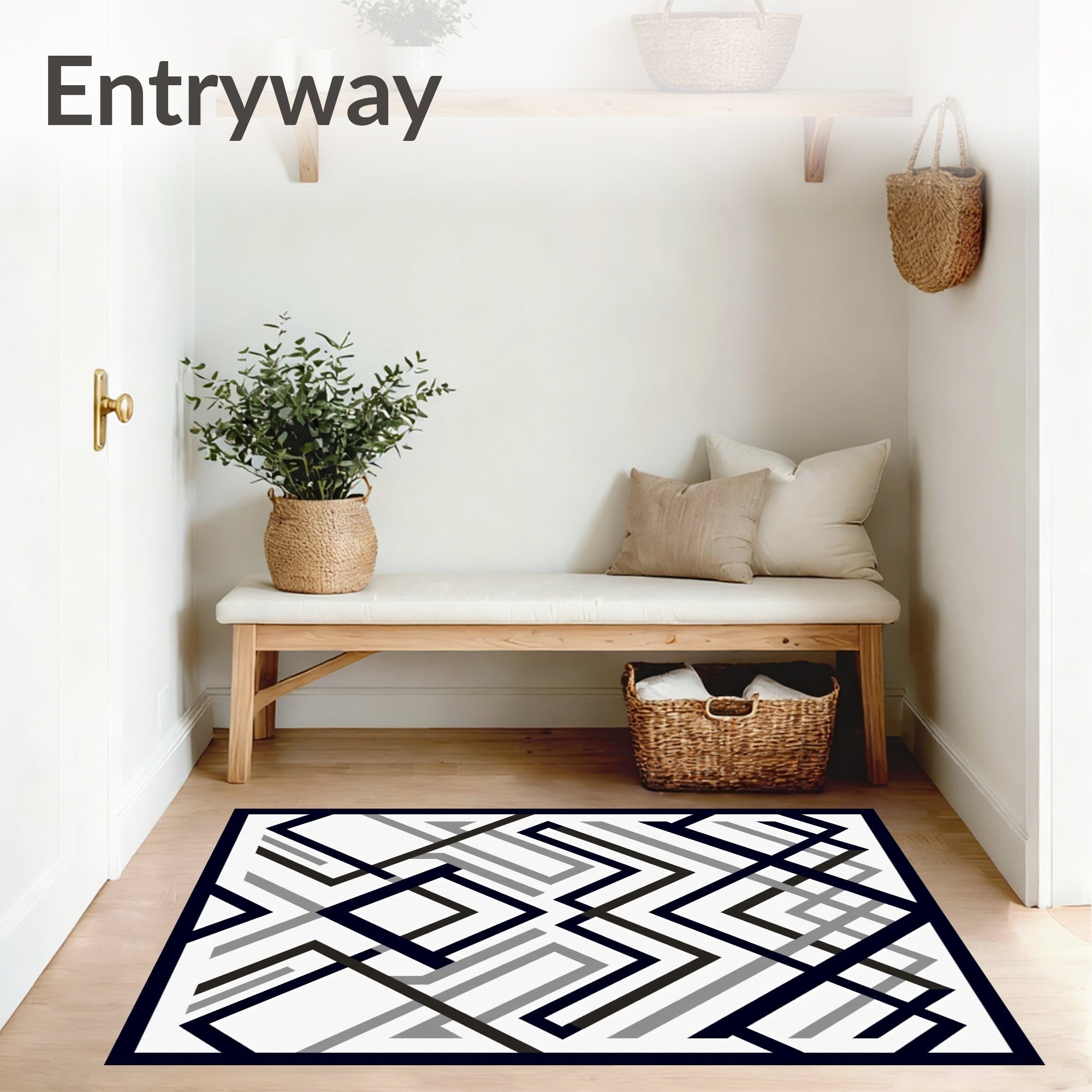 Flatwoven High Traffic Area Rug, Distinctive Bordered Chevron Zigzag Angled Transitional Refined, Non Slip, Stain Resistant, Washable Area Rugs for Living Room, Bedroom (Black) Overview: